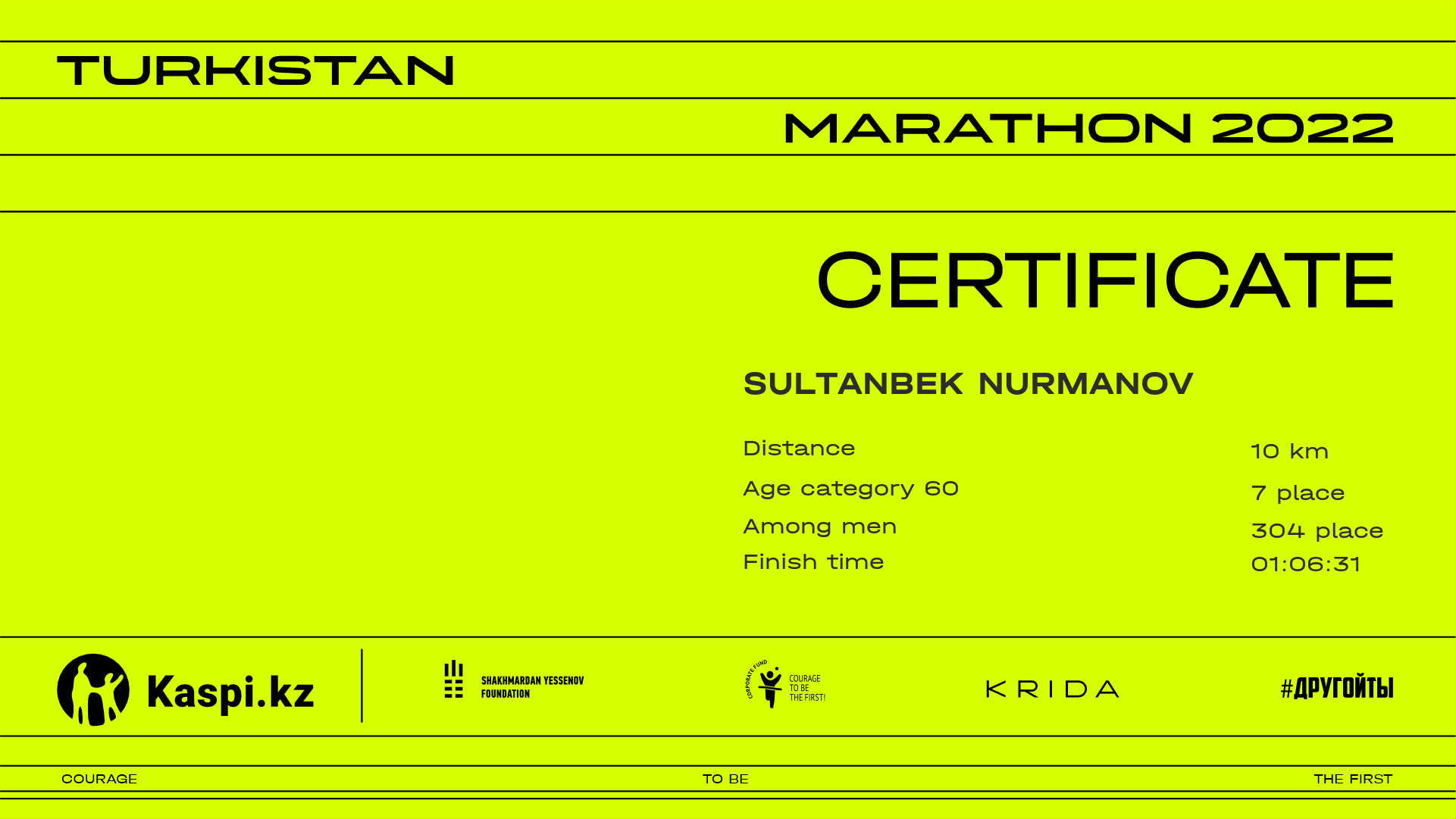 | 473 | Арыстанбек Кошкинбаев | ![]() | Туркестан | 1990 | 00:33:21.29 | 01:06:53.51 | 01:06:13.29 | Download |