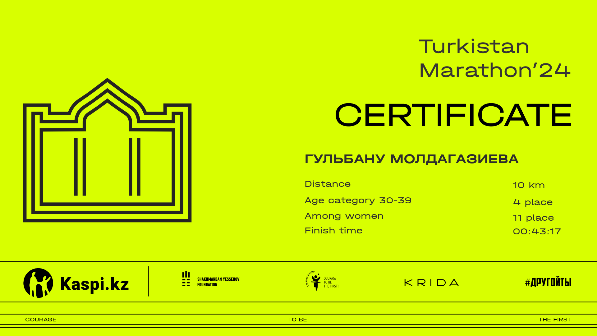 | 120 | Serik Akimov | ![]() | Туркестан | 1786 | 00:22:52 | 00:44:35 | 00:44:25 | Download |