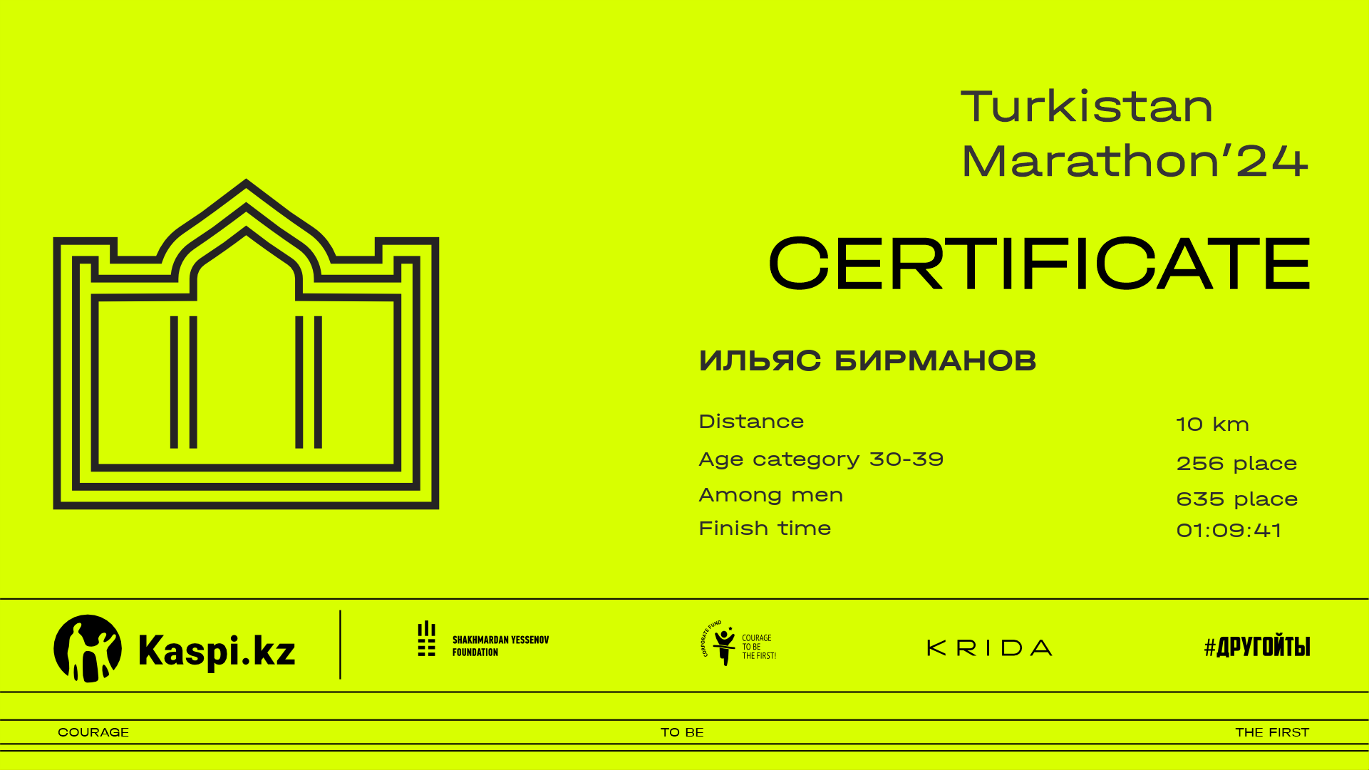 | 147 | Nurmukhambet Meirmanov | ![]() | Астана | 1153 | 00:23:06 | 00:46:22 | 00:46:20 | Download |