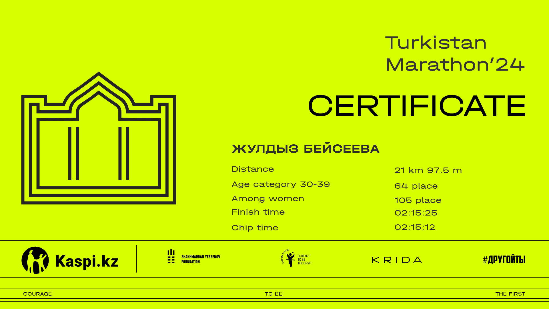 | 461 | Жулдыз Бейсеева | ![]() | Алматы | 579 | 00:30:01 | 01:04:48 | 01:40:15 | 02:15:25 | 02:15:12 | Download |