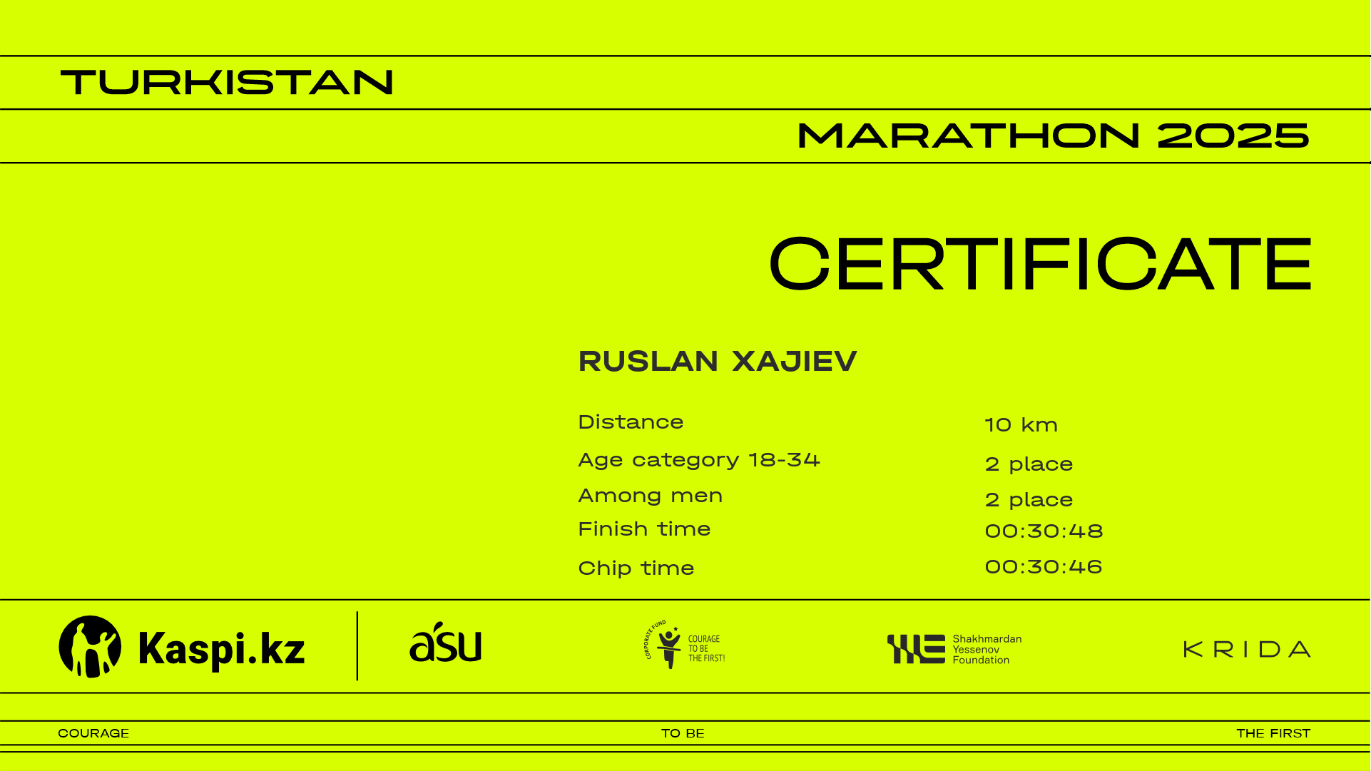 | 2 | Ruslan Xajiev | ![]() | Tashkent | 2009 | 00:19:03 | 00:30:48 | 00:30:46 | Download |