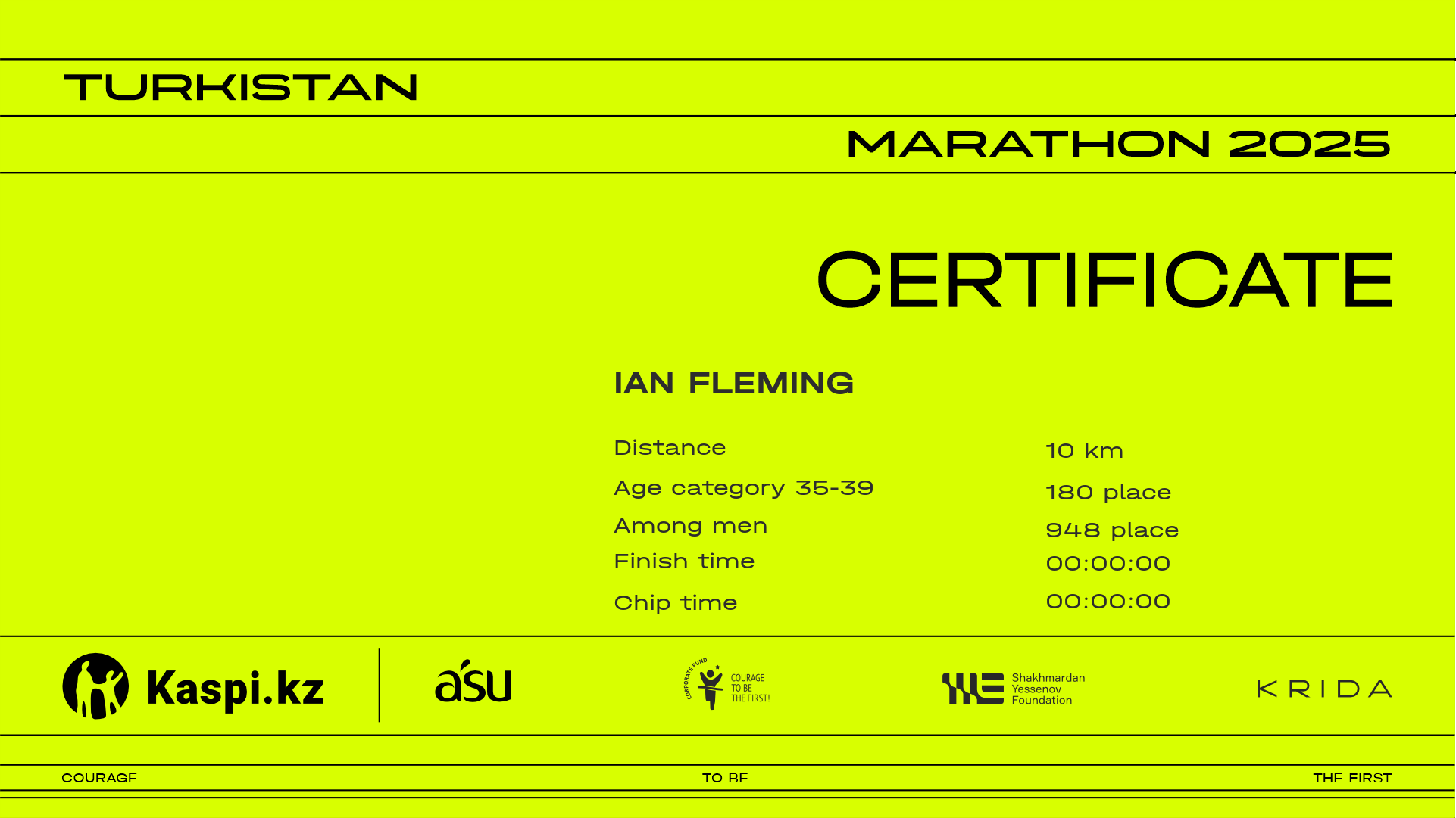 | 382 | Ibragim Ibragimov | ![]() | Шымкент | 2264 | 00:33:52 | 00:54:41 | 00:54:16 | Download |