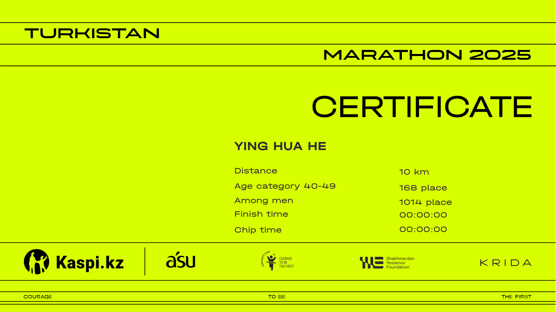 | 1052 | Улбосын Әмірхан | ![]() | Шымкент | 1867 | 01:23:47 | 01:23:10 | Download | |