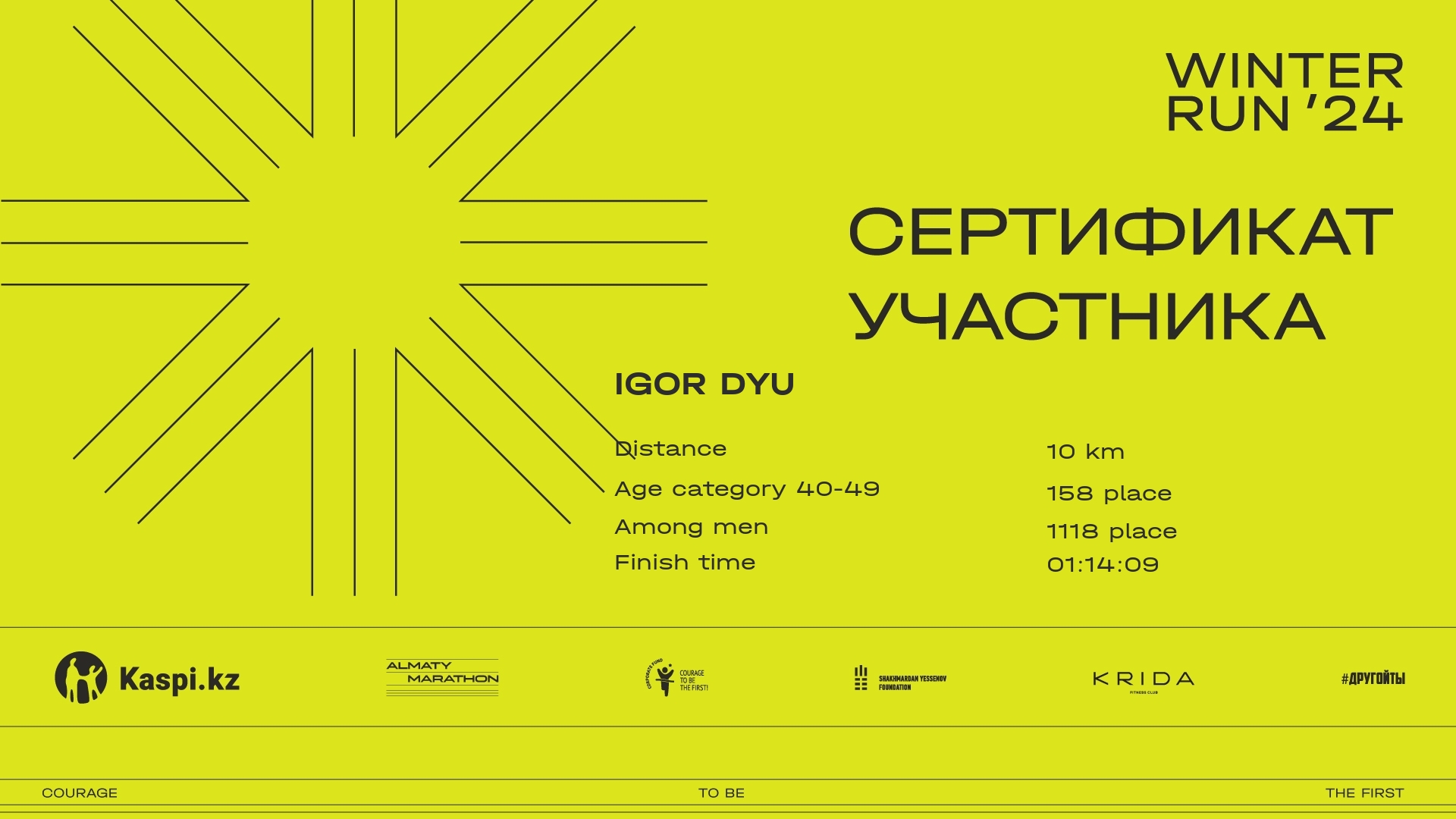 | 1537 | Igor Dyu | ![]() | Almaty | 1833 | 00:11:44 | 00:39:08 | 01:02:37 | 01:14:09 | 01:12:58 | Download |
