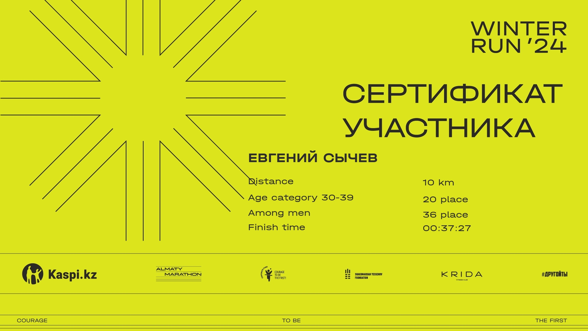 | 37 | Kuat Rakhmetov | ![]() | Алматы | 692 | 00:05:41 | 00:19:26 | 00:31:40 | 00:37:23 | 00:37:23 | Download |