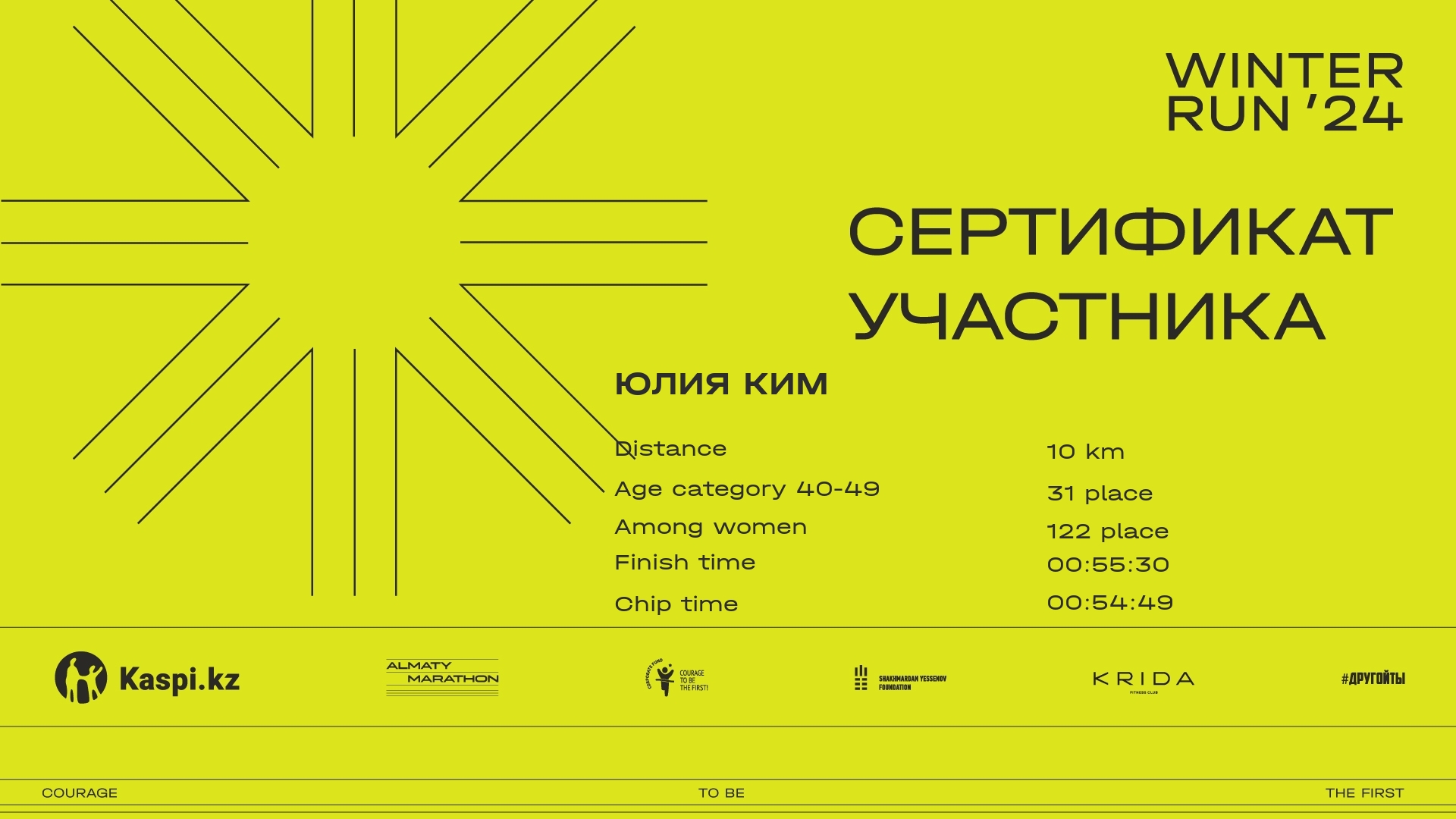 | 1731 | Оксана Стручалина | ![]() | Алматы | 1859 | 00:12:10 | 00:43:44 | 01:12:09 | 01:25:46 | 01:24:24 | Download |