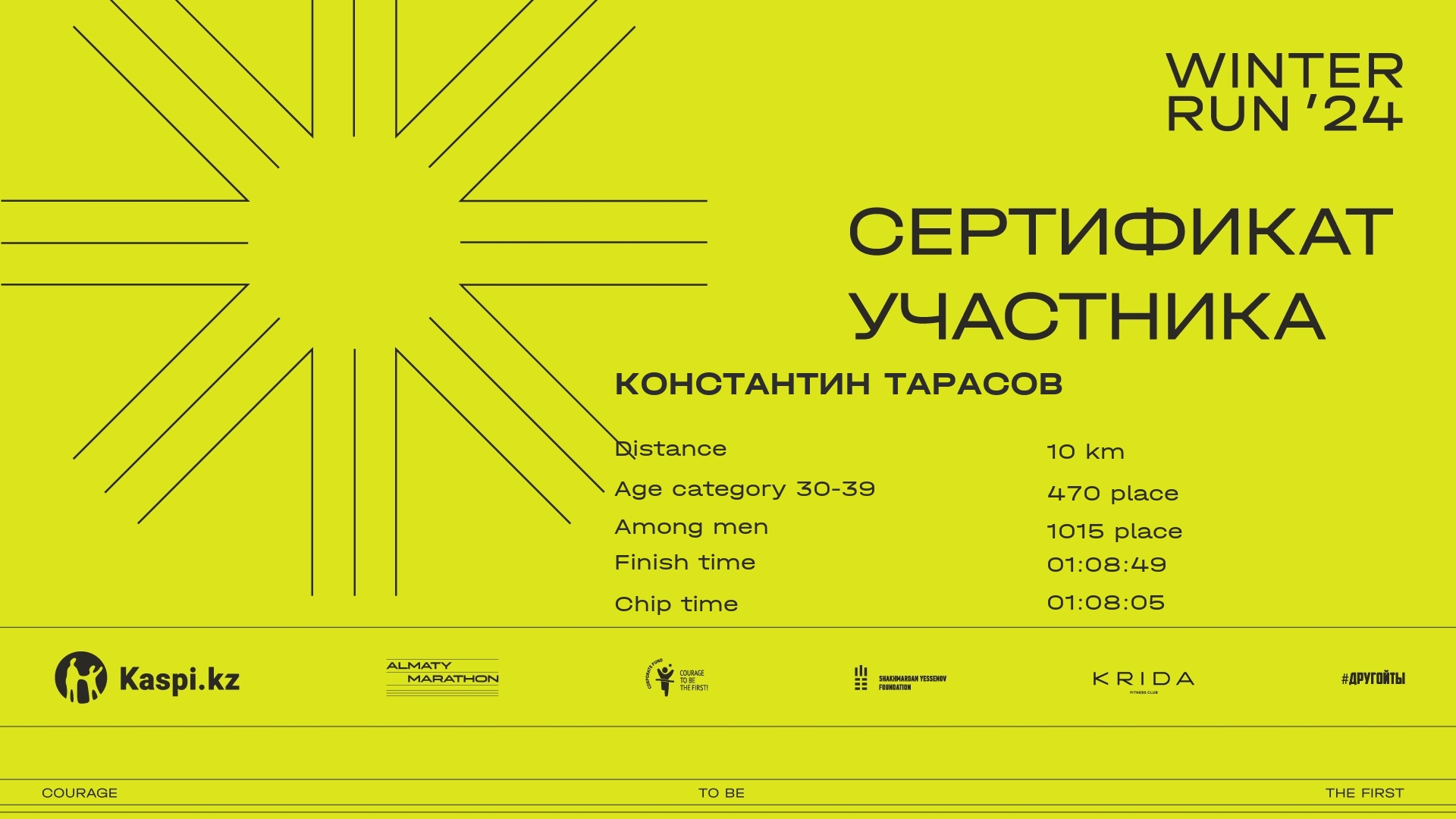 | 1370 | Константин Тарасов | ![]() | Алматы | 1435 | 00:10:06 | 00:35:53 | 00:58:29 | 01:08:49 | 01:08:05 | Download |