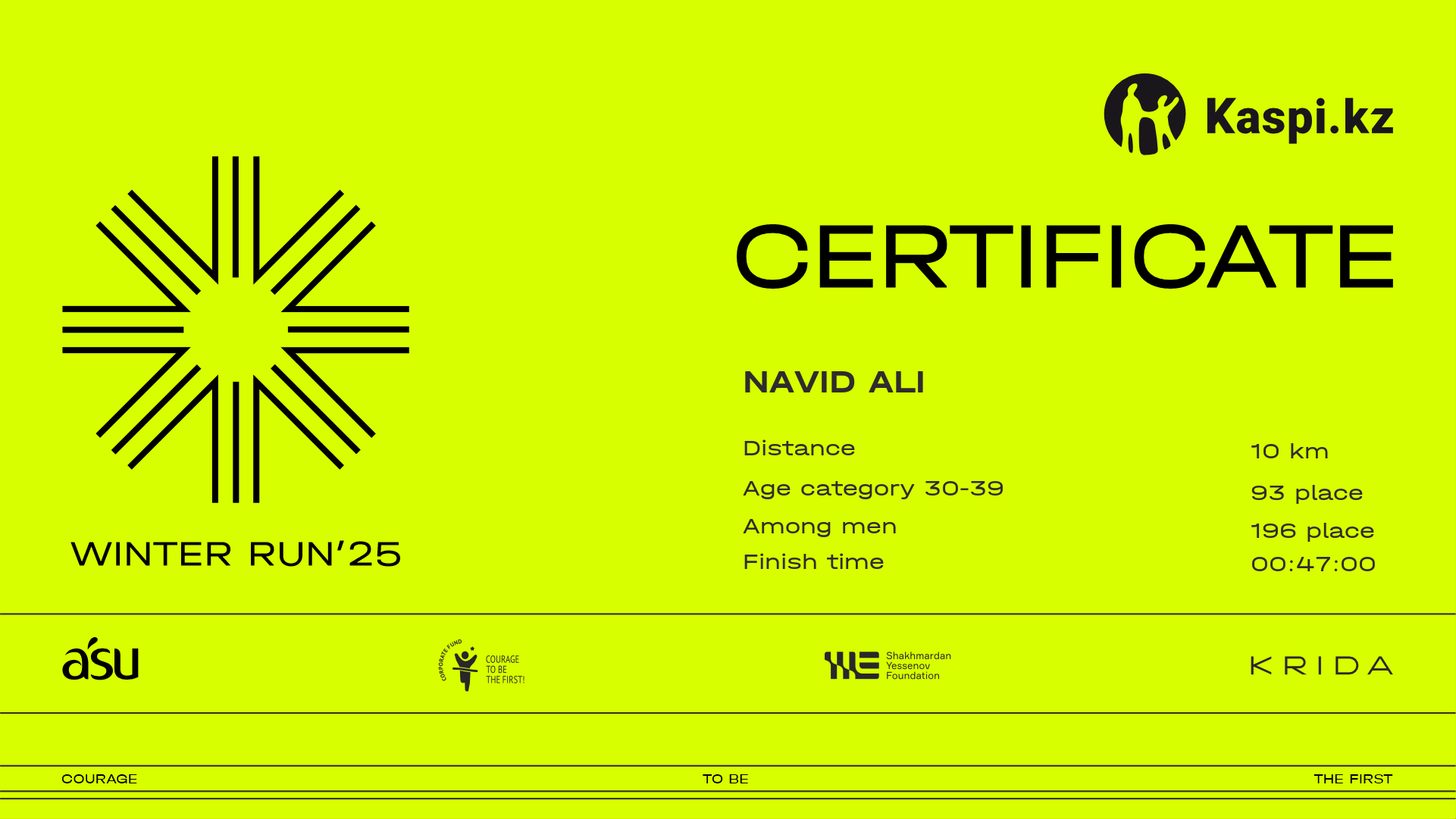 | 232 | Владимир Костюнин | ![]() | Алматы | 999 | 00:19:19 | 00:34:29 | 00:47:27 | 00:47:23 | Download |