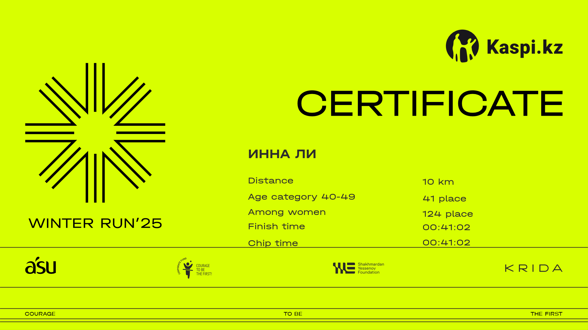 | 621 | Amina Zhanassova | ![]() | Алматы | 148 | 00:22:52 | 00:41:03 | 00:56:29 | 00:56:19 | Download |