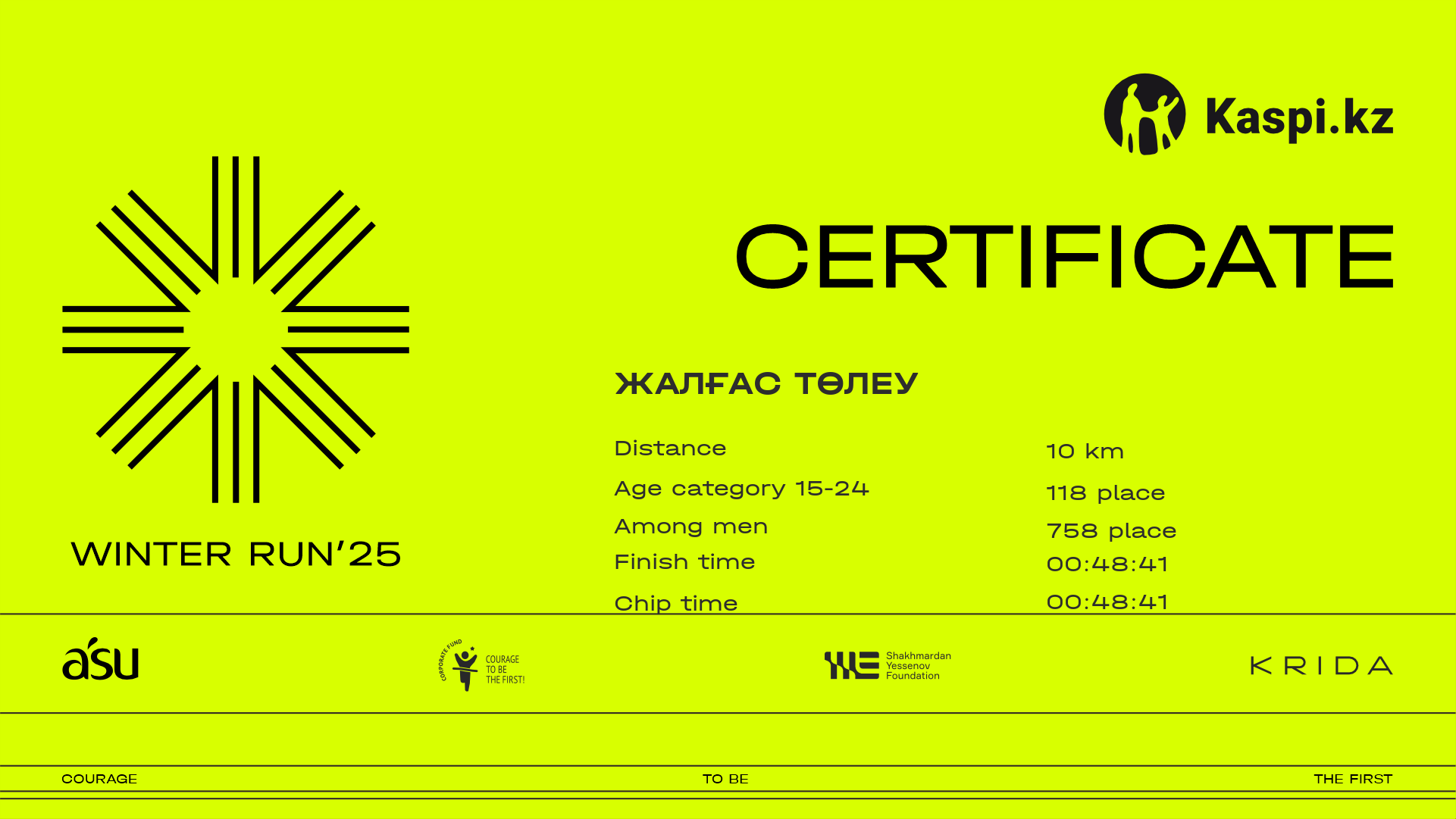 | 534 | Yeldos Temirgaliyev | ![]() | Алматы | 400 | 00:22:18 | 00:39:57 | 00:54:48 | 00:54:40 | Download |