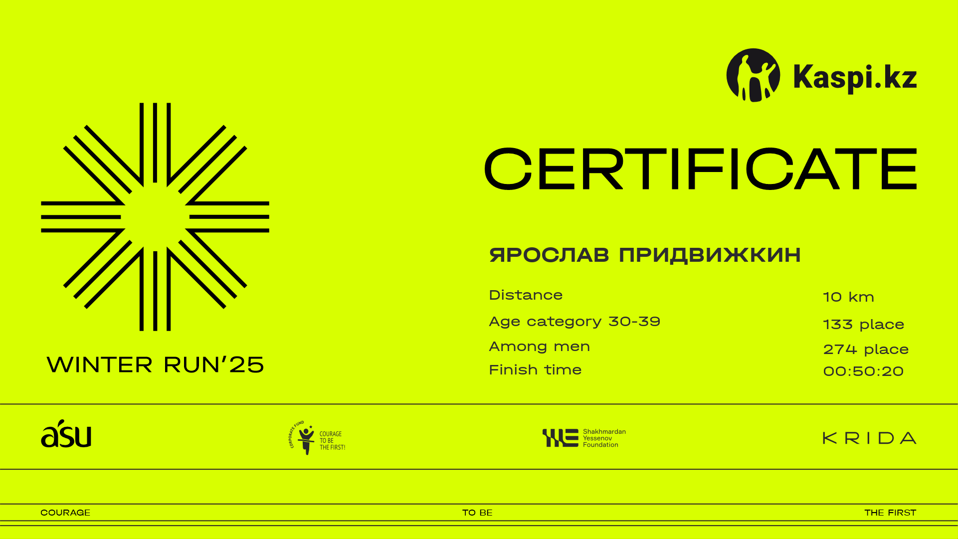 | 315 | Ярослав Придвижкин | ![]() | Алматы | 1053 | 00:19:32 | 00:35:24 | 00:50:20 | 00:49:52 | Download |