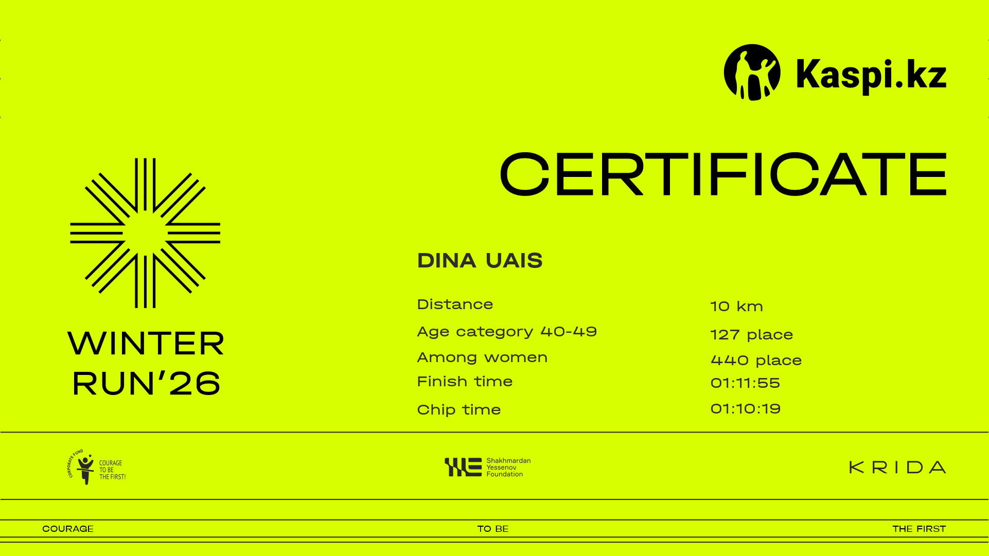 | 1659 | Dina Uais | ![]() | Алматы | 1210 | 00:11:09.78 | 00:37:42.47 | 01:00:53.45 | 01:11:55.09 | 01:10:19.72 | Download |