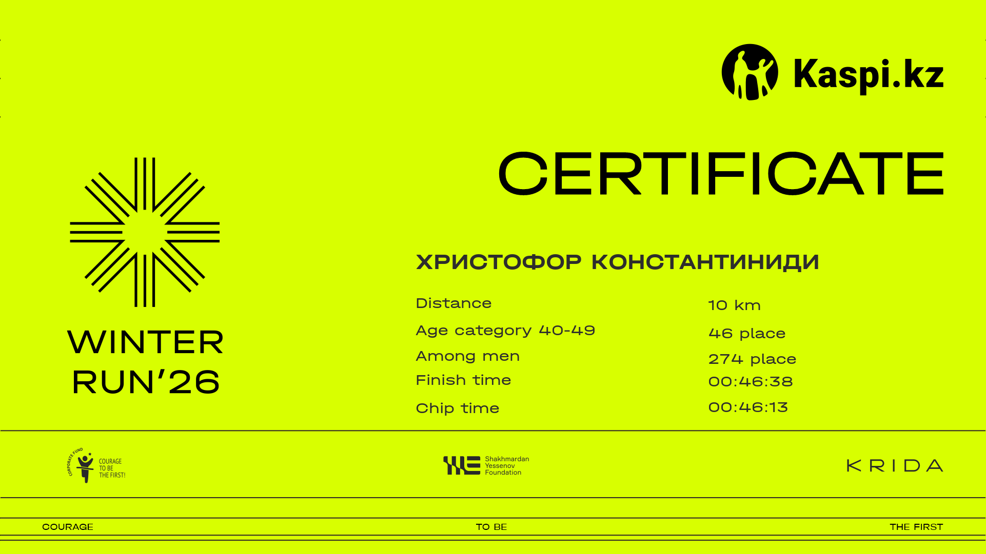 | 307 | Христофор Константиниди | ![]() | Алматы | 654 | 00:07:02.91 | 00:24:19.66 | 00:39:38.85 | 00:46:38.42 | 00:46:13.59 | Download |