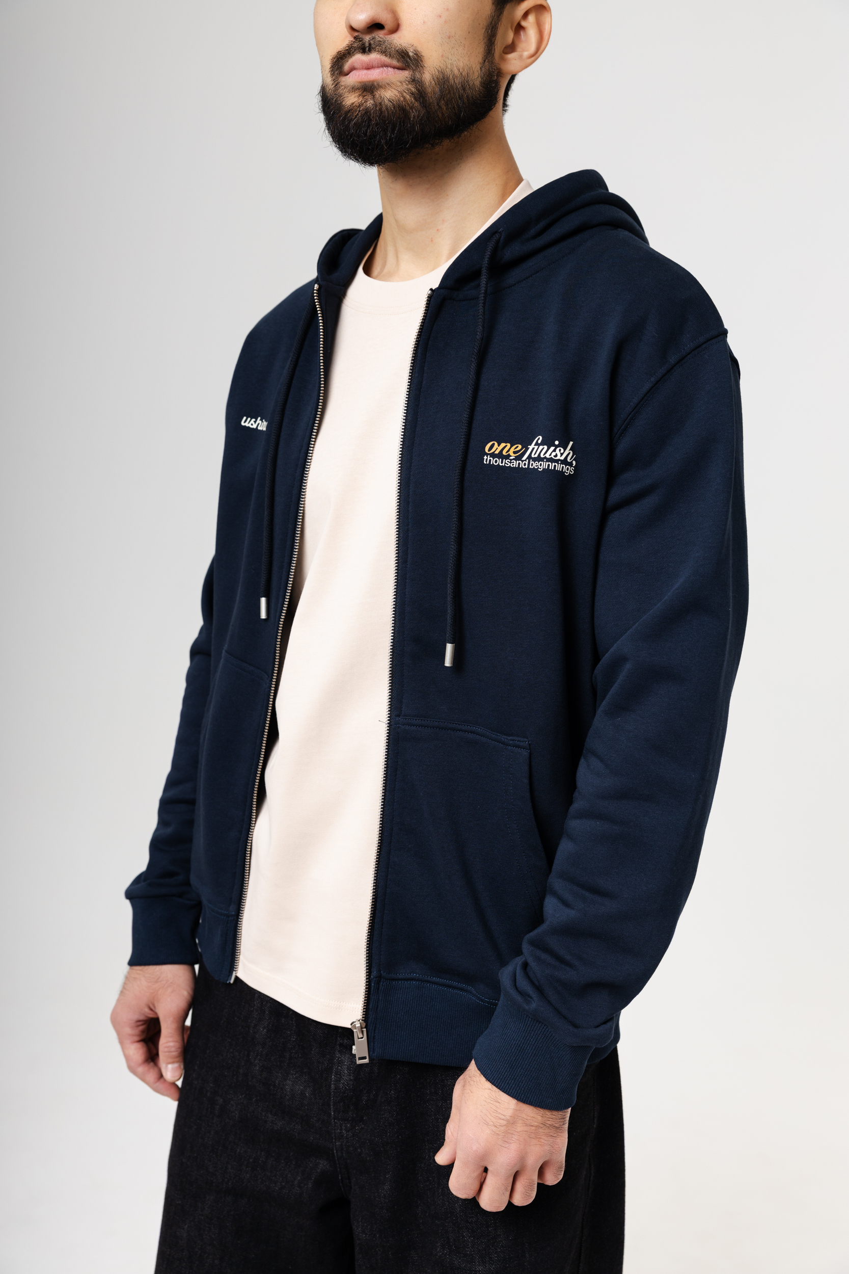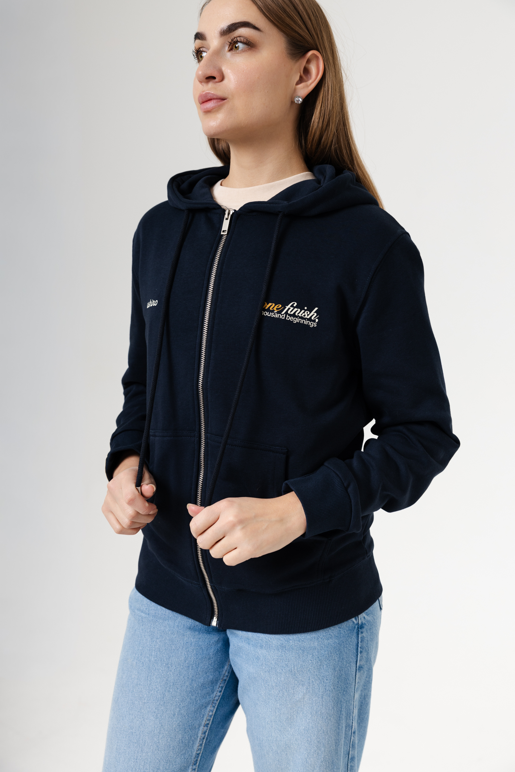 The result of a collaboration between the sports brand AYMN and the premium local brand USHIRO — a hoodie combining casual style aesthetics with the spirit of the city’s running culture. This model is designed for those who appreciate high-quality materials, understated design, and belonging to the Almaty Running Community. Dense, soft knit provides all-day comfort, and the thoughtful cut makes the hoodie versatile for both city life and travel. A zipper closure and voluminous hood add practicality, while branded prints emphasise the uniqueness of this collaborative project. A large graphic print of the Almaty Running Community is positioned on the back and reflects the idea of unifying people together around running and urban culture.