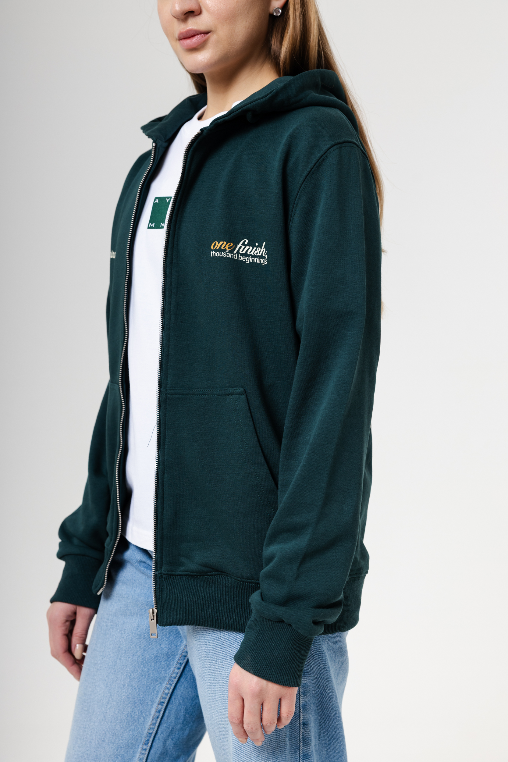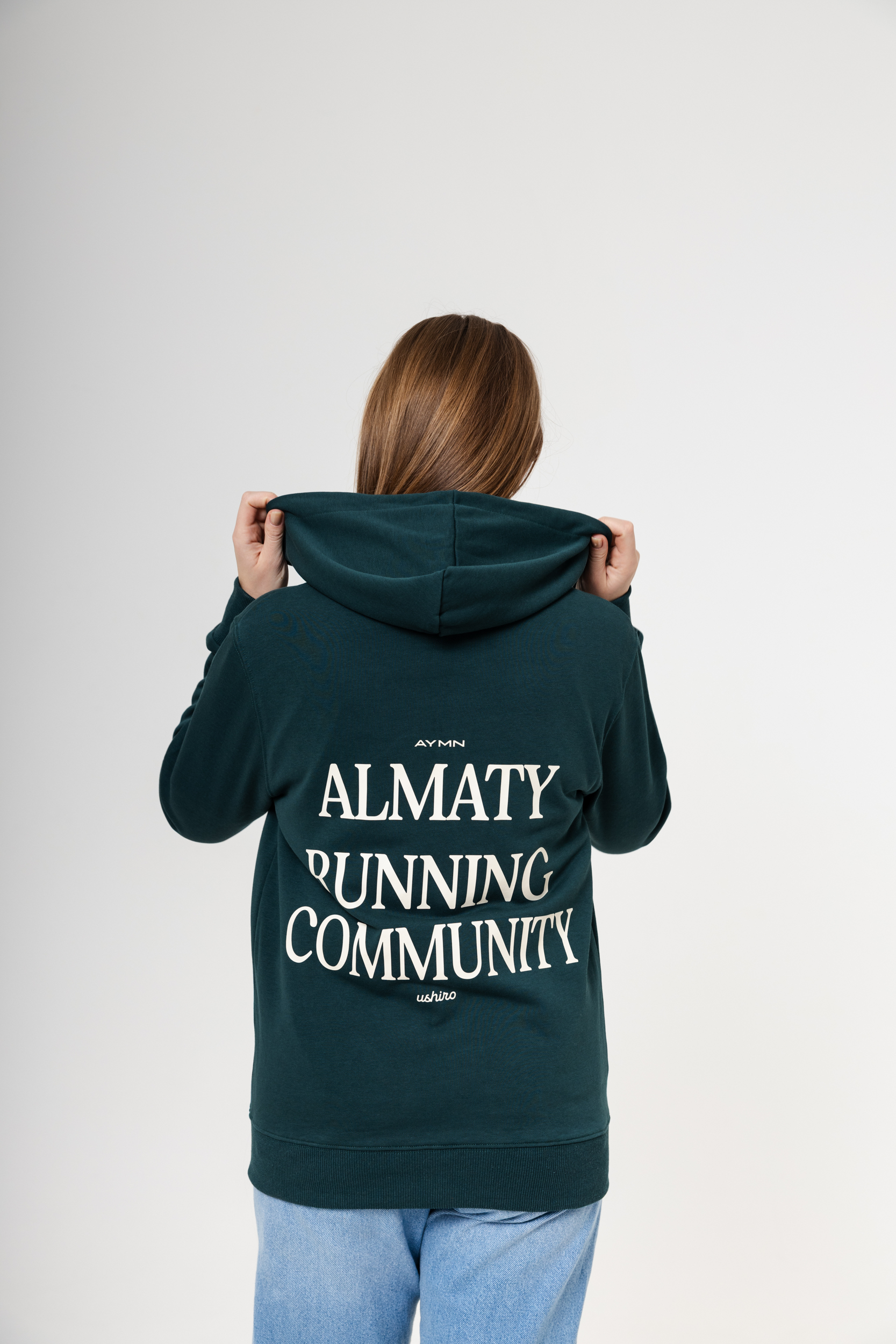The result of a collaboration between the sports brand AYMN and the premium local brand USHIRO — a hoodie combining casual style aesthetics with the spirit of the city’s running culture. This model is designed for those who appreciate high-quality materials, understated design, and belonging to the Almaty Running Community. Dense, soft knit provides all-day comfort, and the thoughtful cut makes the hoodie versatile for both city life and travel. A zipper closure and voluminous hood add practicality, while branded prints emphasise the uniqueness of this collaborative project. A large graphic print of the Almaty Running Community is positioned on the back and reflects the idea of unifying people together around running and urban culture.
