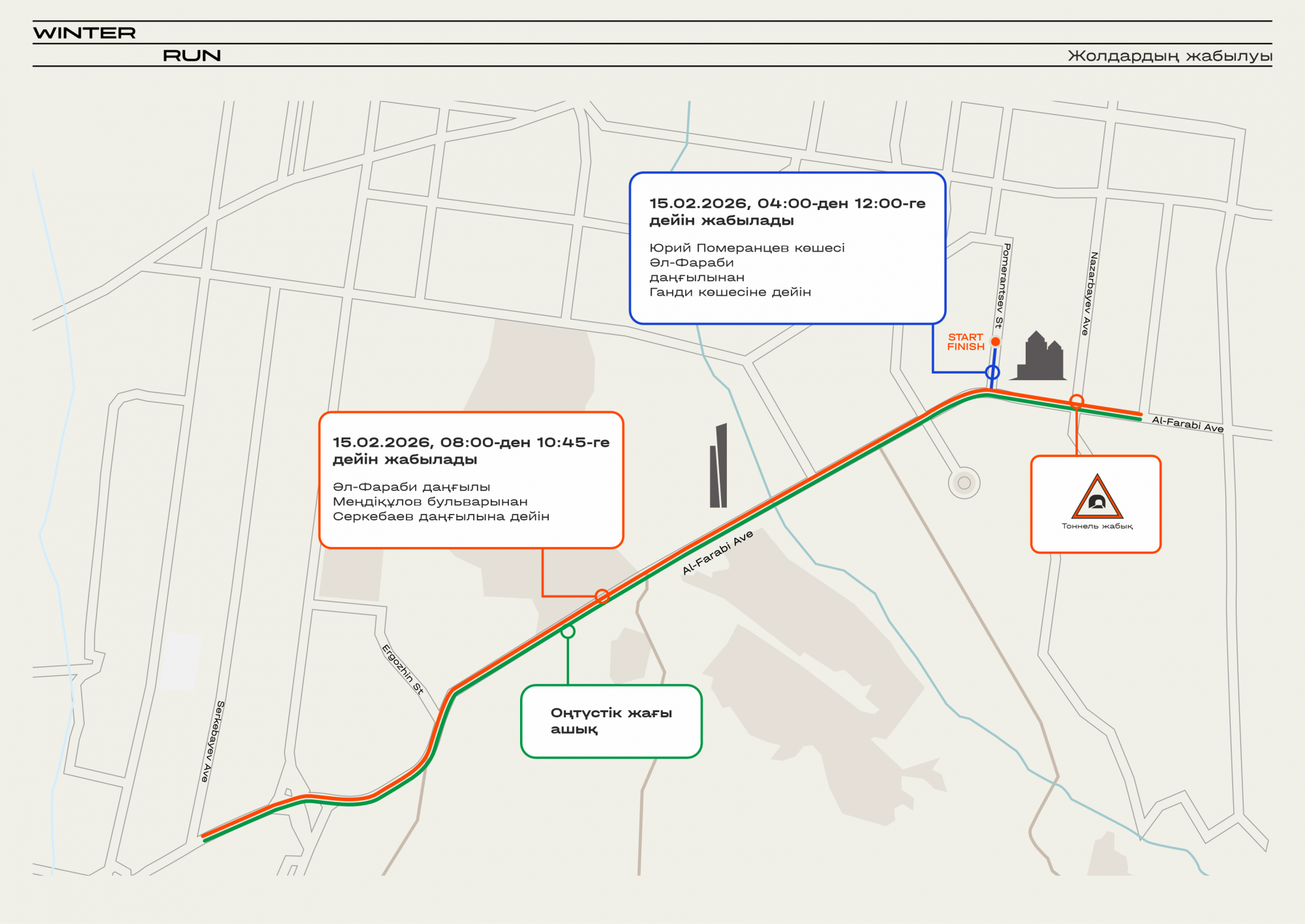 Winter Run 2026 қалалық жүгіру жарысы кезіндегі жолдардың жабылу кестесі
