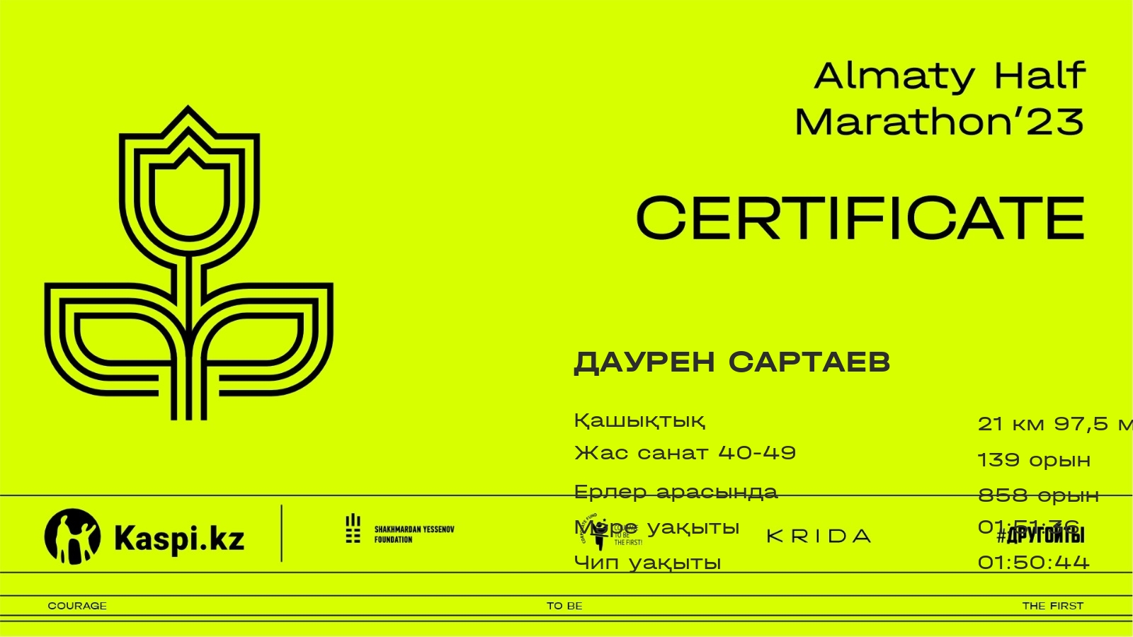 | 1030 | Ziyat Imambekov | ![]() | Almaty | 575 | 00:26:17.11 | 00:54:18.51 | 01:19:58.79 | 01:47:46.38 | 01:54:14.41 | 01:53:10.63 | Жүктеп алу |