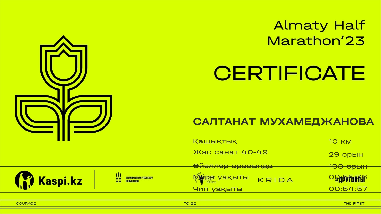 | 925 | Салтанат Мухамеджанова | ![]() | Алматы | 4618 | 00:37:53.47 | 00:55:36.03 | 00:54:57.98 | Жүктеп алу |