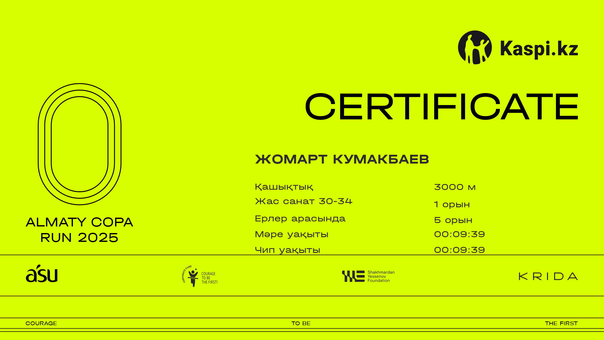 | 5 | Жомарт Кумакбаев | ![]() | Алматы | 552 | 00:09:39.30 | 00:09:39.30 | Жүктеп алу |