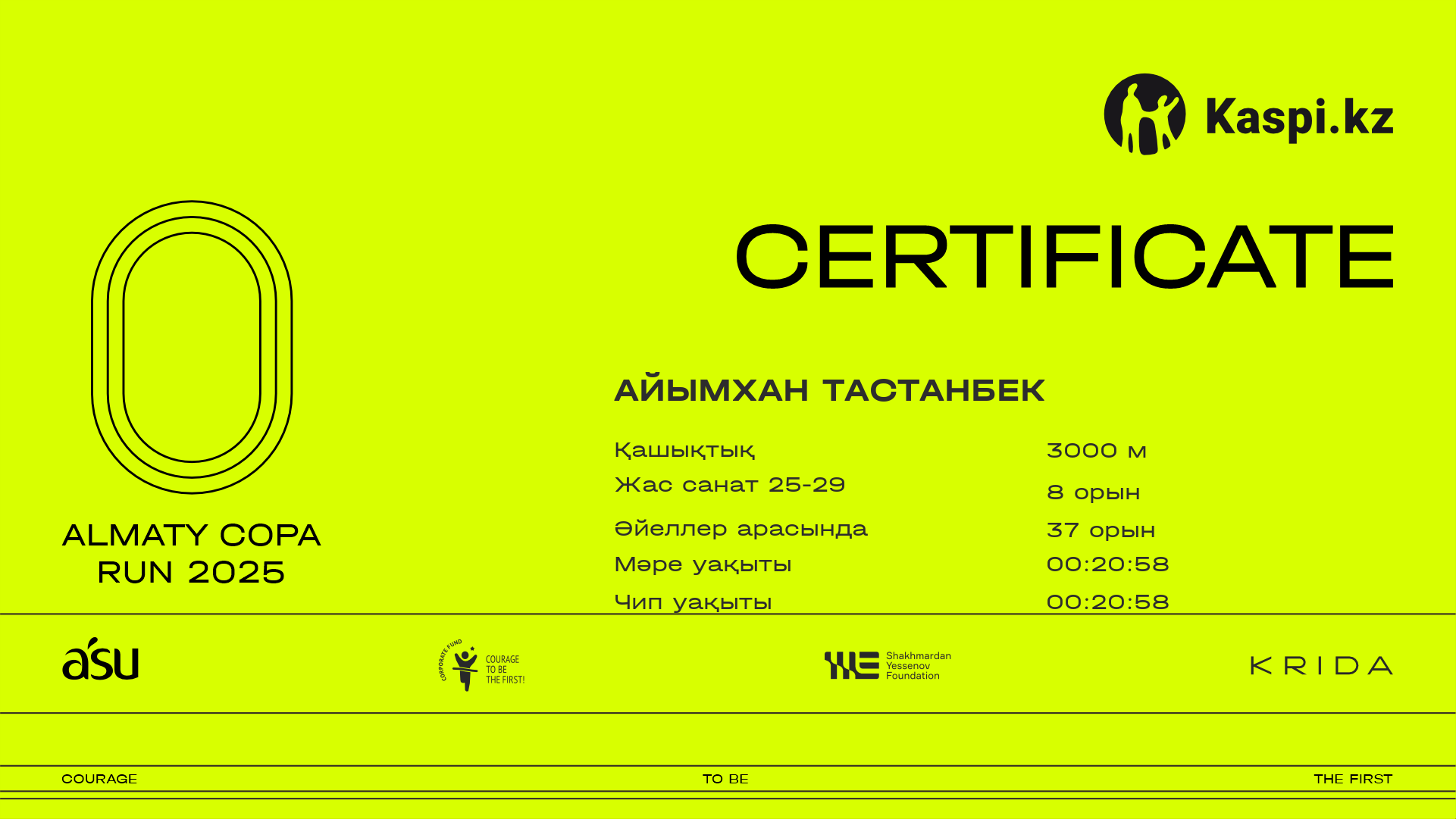 | 68 | Адиль Исхан | ![]() | Алматы | 561 | 00:12:08.10 | 00:12:08.10 | Жүктеп алу |