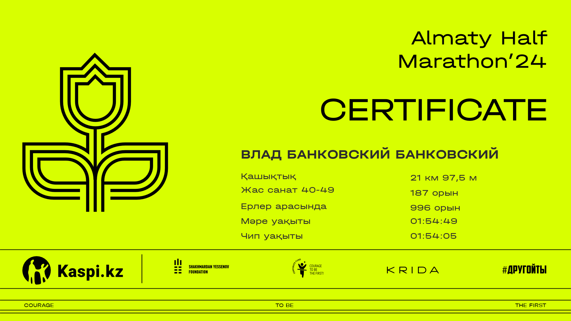 | 2214 | Darkhan Akmyrza | ![]() | Алматы | 2776 | 00:36:36 | 01:12:54 | 01:45:18 | 02:16:51 | 02:23:43 | 02:21:49 | Жүктеп алу |