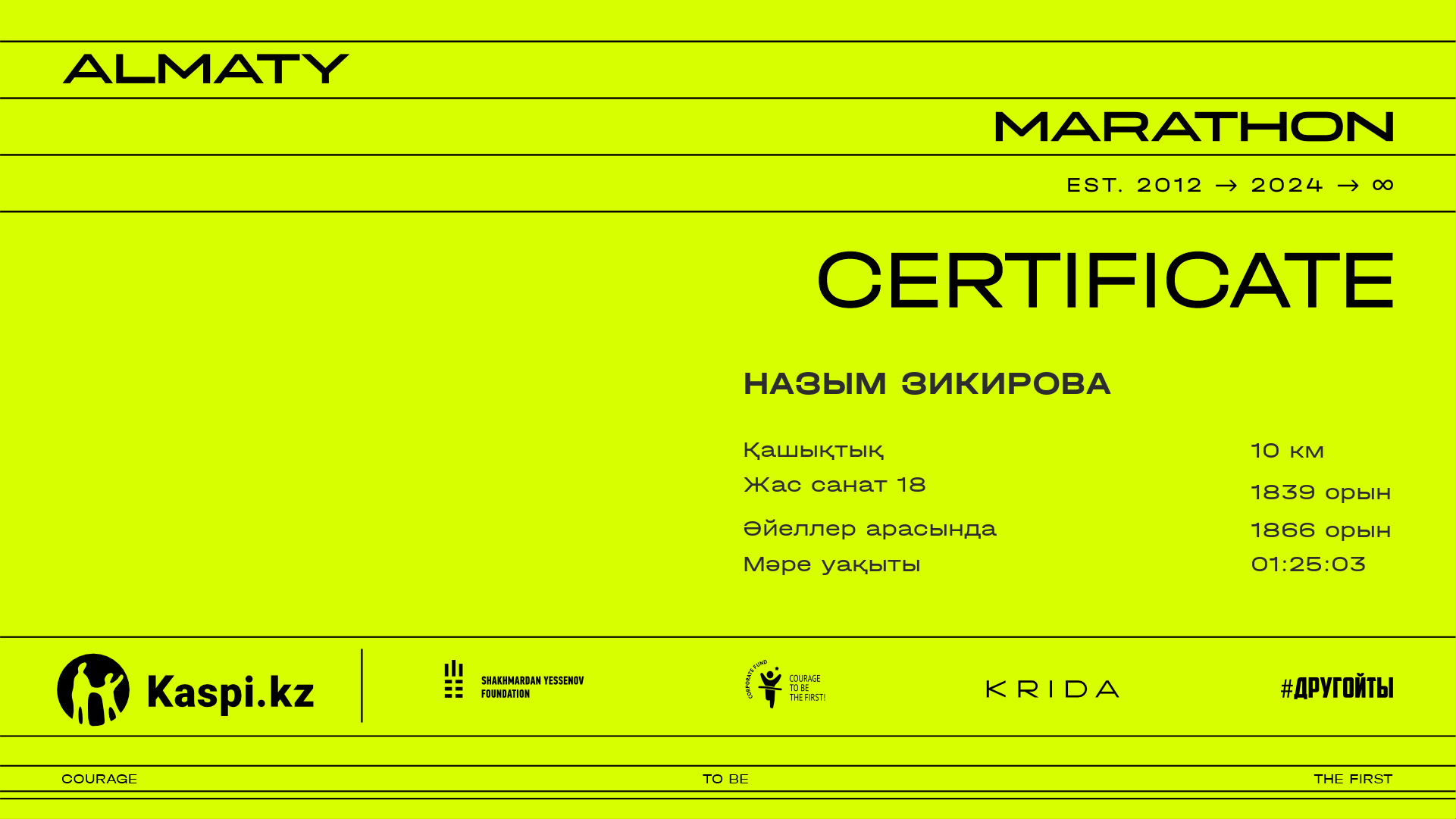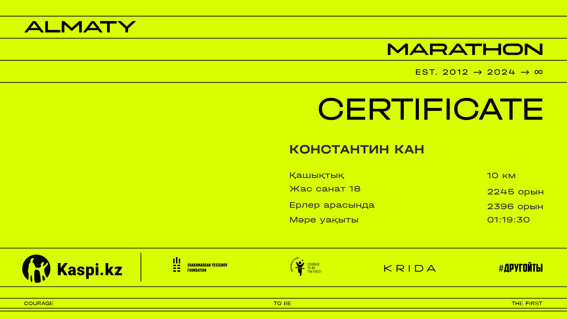 | 3025 | Maxat Zhaisanbayev | ![]() | Алматы | 9935 | 00:53:47.14 | 01:13:45.27 | 01:12:26.39 | Жүктеп алу |