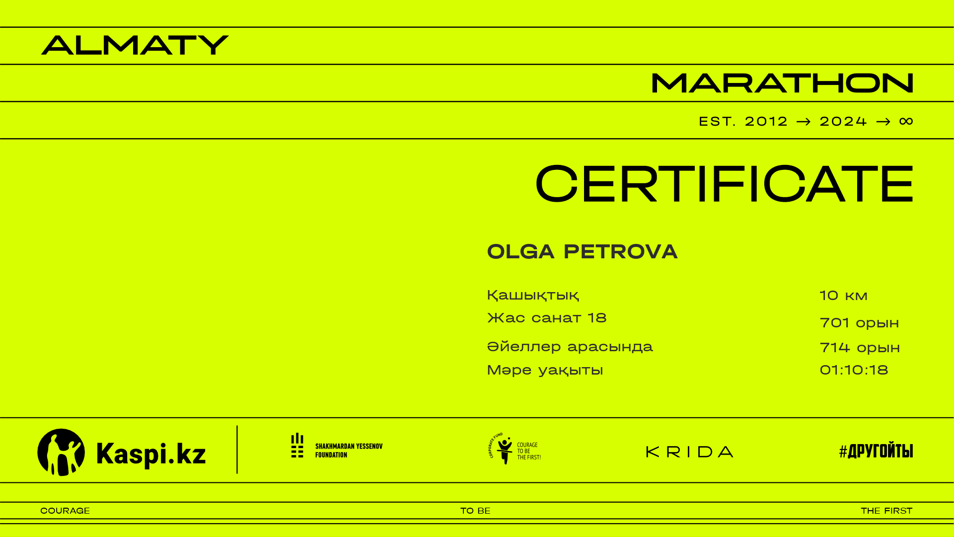 | 2206 | Фарида Сыздыкова | ![]() | Алматы | 8204 | 00:49:11.64 | 01:08:18.25 | 01:06:40.38 | Жүктеп алу |