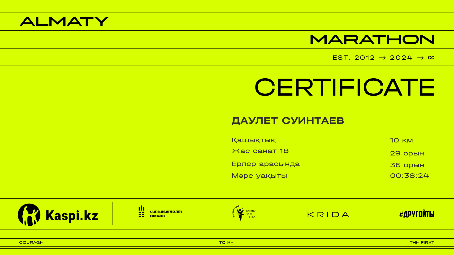 54Ерсайын МайлыбаевKazakhstan.pngАлматы387800:28:35.5800:39:31.3100:39:29.75Жүктеп алу