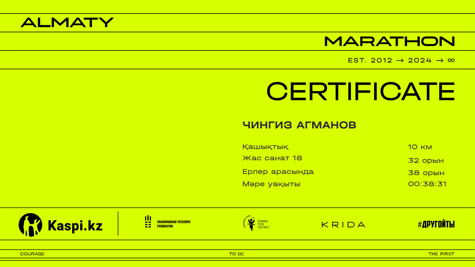 ОрынҚатысушыЕлҚалаНөмір7.2 kmФинишУақыт чипіСертификат