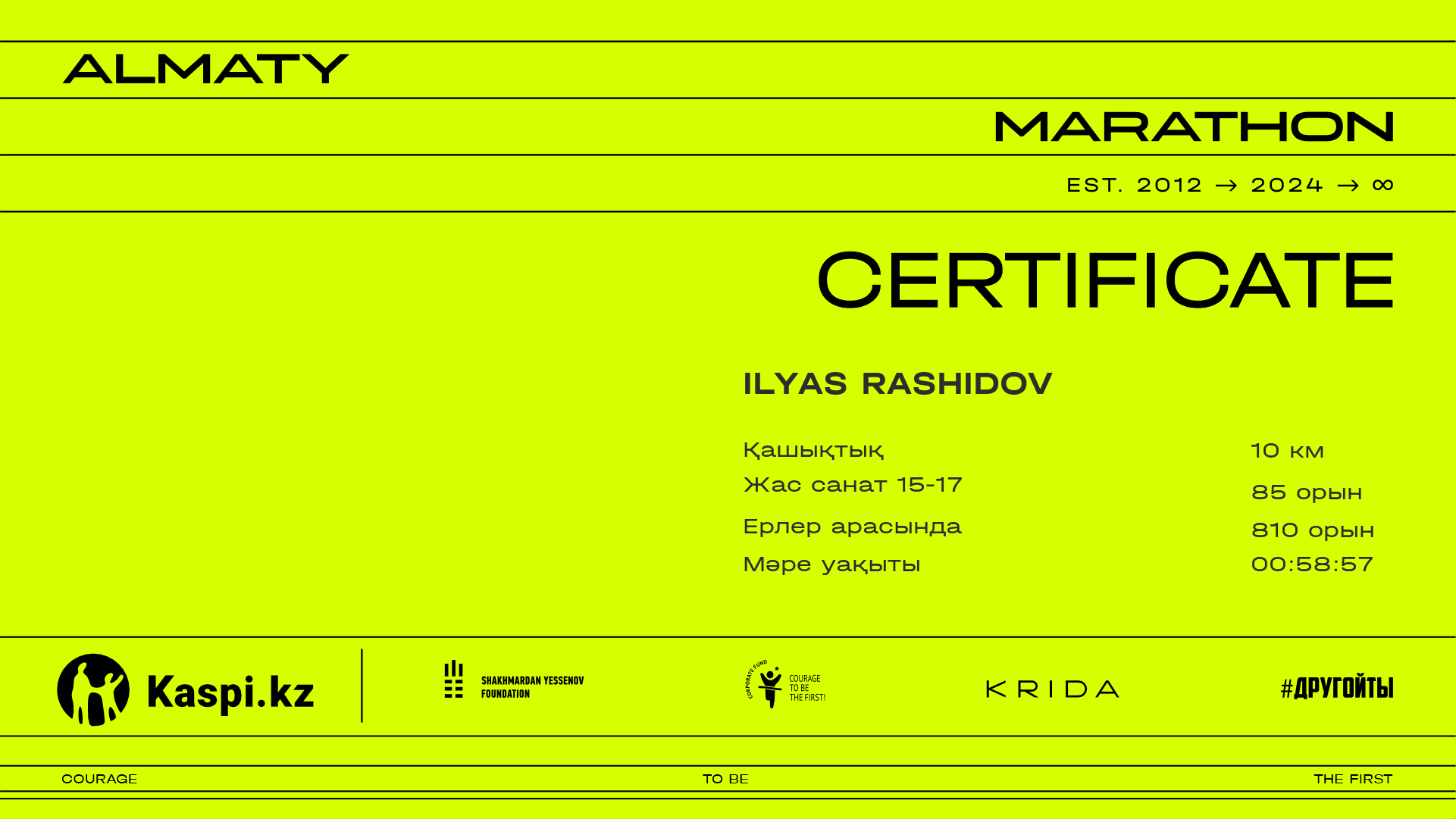 | 977 | Ilyas Rashidov | ![]() | Almaty | 5756 | --:--:-- | 00:58:57.15 | 00:56:32.92 | Жүктеп алу |
