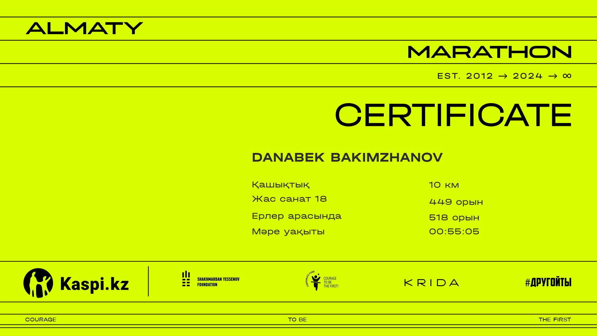 | 596 | Danabek Bakimzhanov | ![]() | Almaty | 10837 | 00:41:09.91 | 00:55:05.14 | 00:53:34.15 | Жүктеп алу |