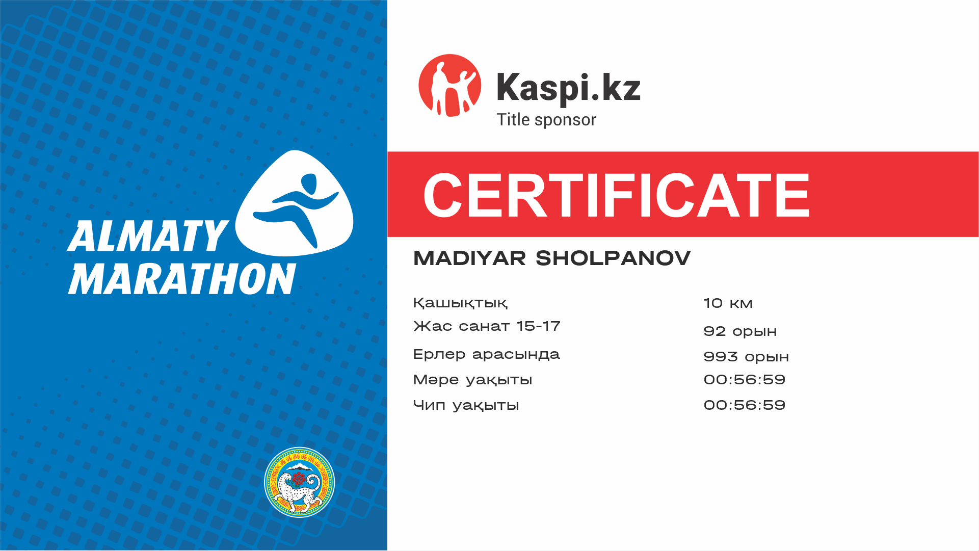 | 5493 | Даулет Сазанбаев | ![]() | Алматы | 11783 | 01:00:37 | 01:24:21 | 01:22:54 | Жүктеп алу |