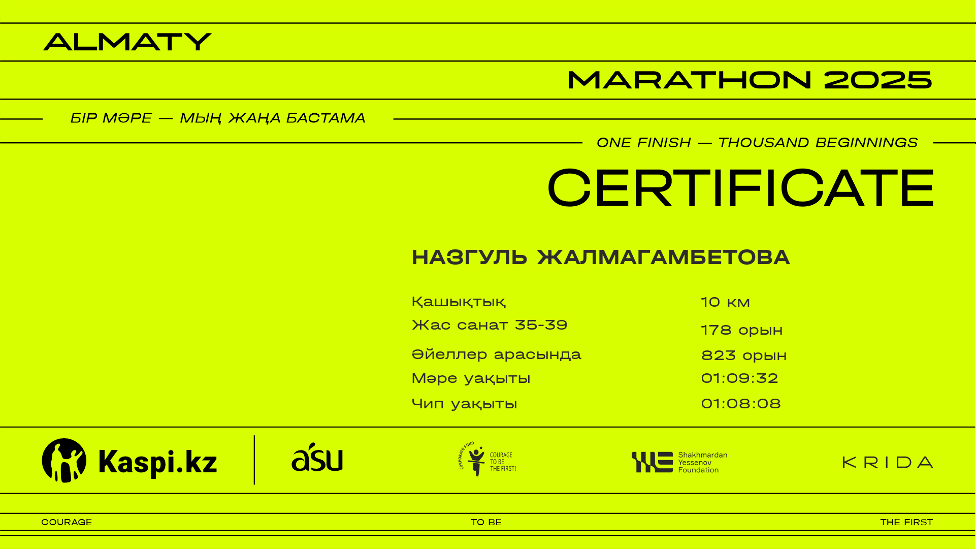 | 805 | Жанна Омар | ![]() | Астана | 8856 | 00:59:54 | 01:09:28 | 01:07:58 | Жүктеп алу |