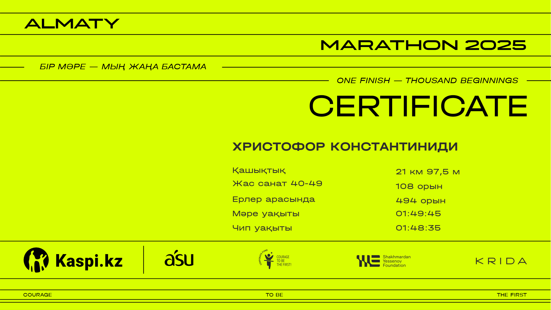 | 554 | Христофор Константиниди | ![]() | Алматы | 5470 | 00:27:52 | 00:53:55 | 01:17:28 | 01:44:07 | 01:49:45 | 01:48:35 | Жүктеп алу |