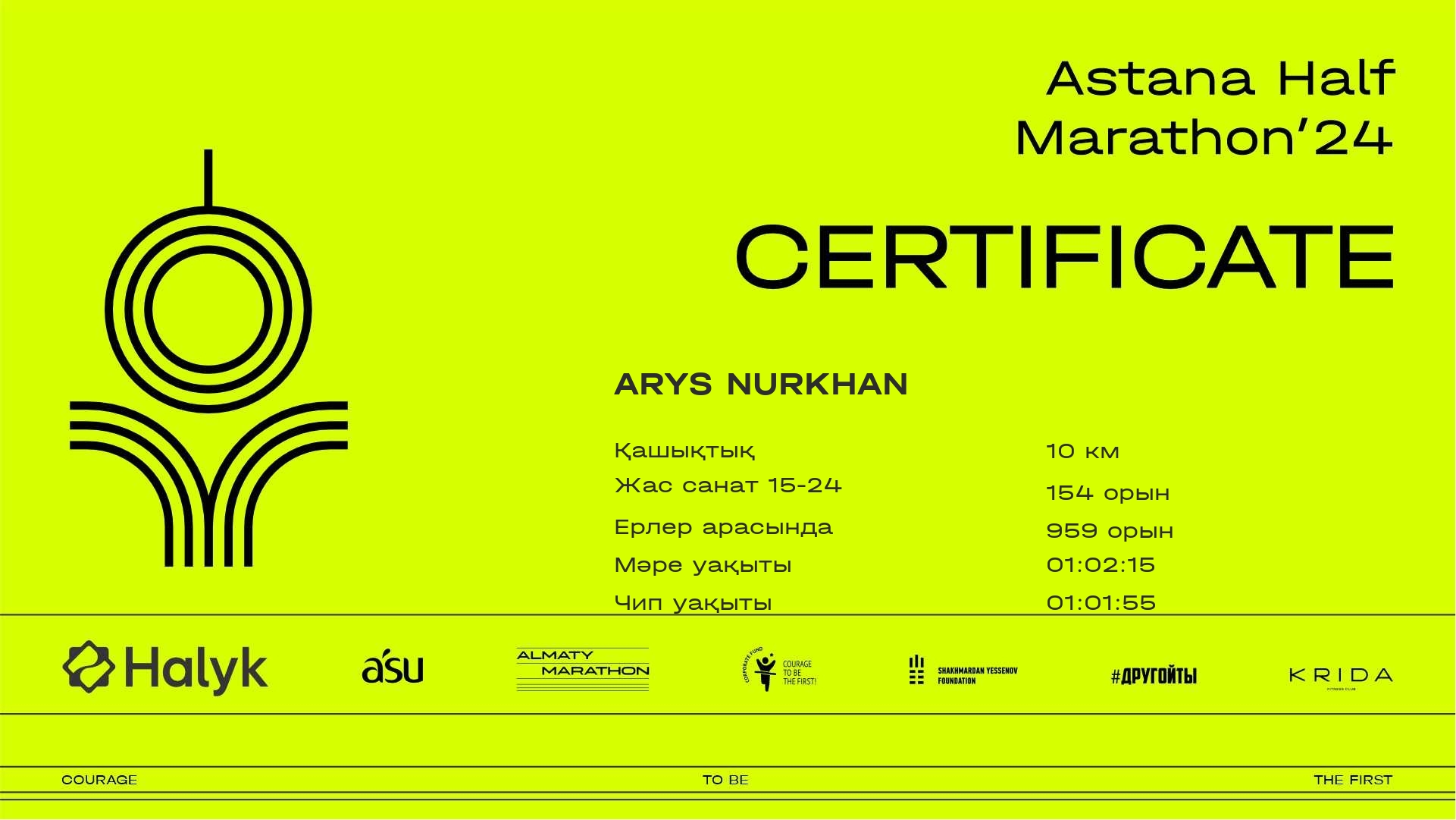 | 1214 | Arys Nurkhan | ![]() | Астана | 4480 | 00:19:22.56 | 00:54:20.05 | 01:02:15.60 | 01:01:55.93 | Жүктеп алу |