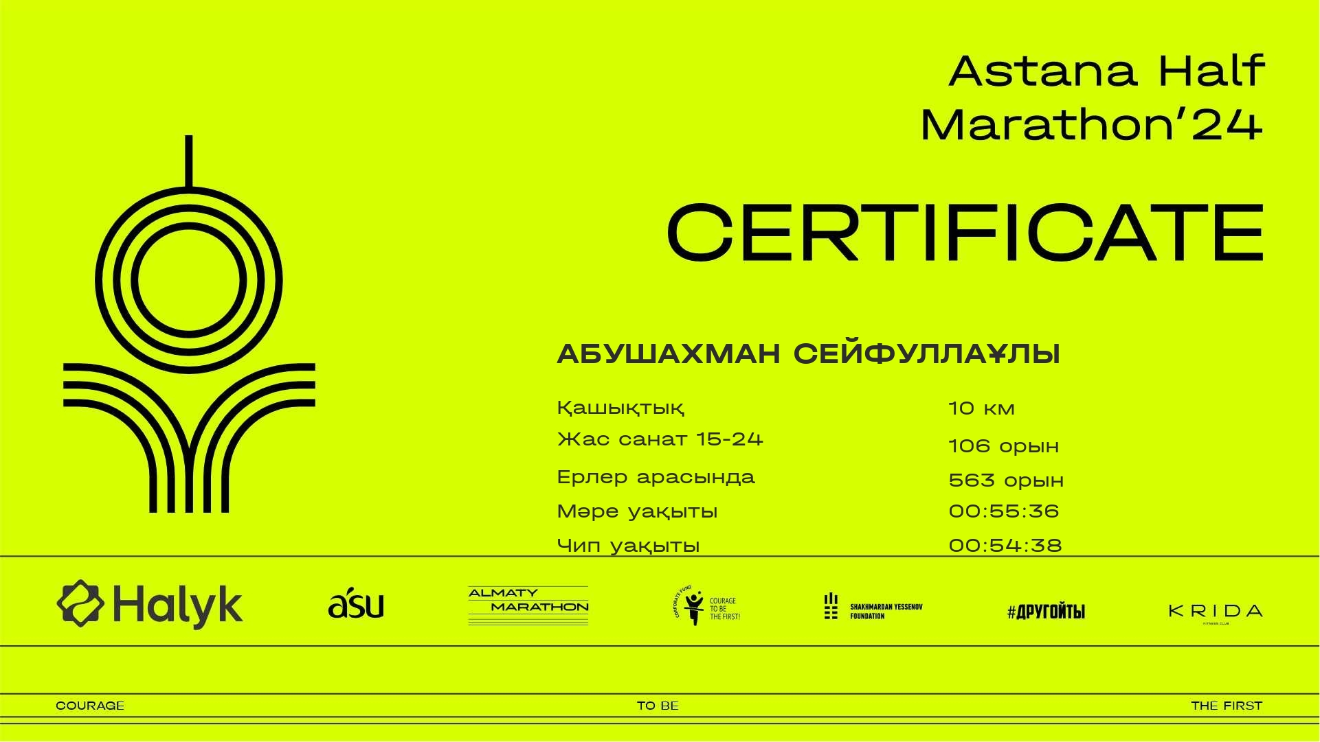 | 587 | Diyar Oralbek | ![]() | Астана | 5717 | 00:19:10.09 | 00:48:08.59 | 00:54:18.37 | 00:53:22.73 | Жүктеп алу |