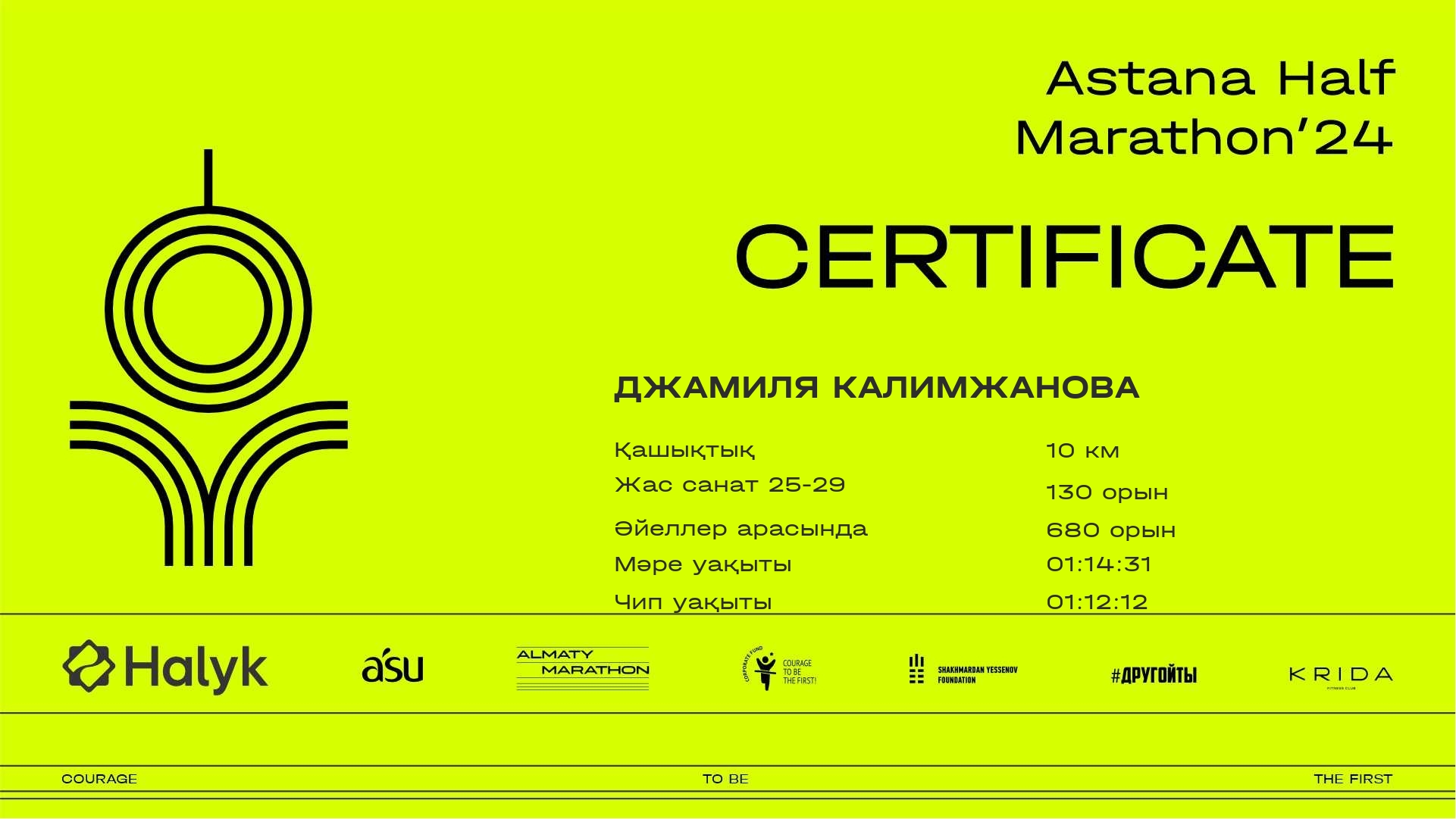 | 2958 | Эльмира Мухамет | ![]() | Алматы | 2958 | 00:28:48.35 | 01:14:29.03 | 01:22:52.47 | 01:20:56.63 | Жүктеп алу |