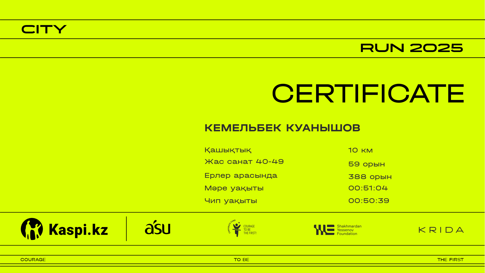 | 461 | Marat Irmenov | ![]() | Almaty | 1990 | 00:13:15 | 00:22:06 | 00:32:19 | 00:42:27 | 00:50:03 | 00:51:07 | 00:50:29 | Жүктеп алу |
