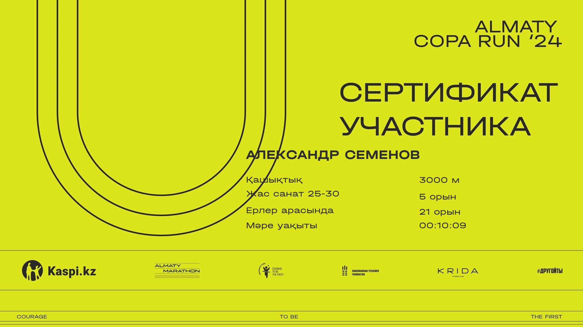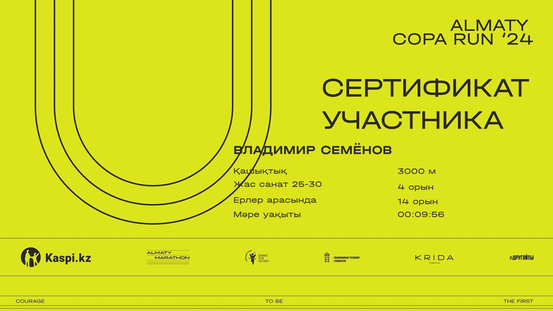 | 11 | Yerden Suraganov | ![]() | Алматы | 694 | 00:09:56.0 | Жүктеп алу |