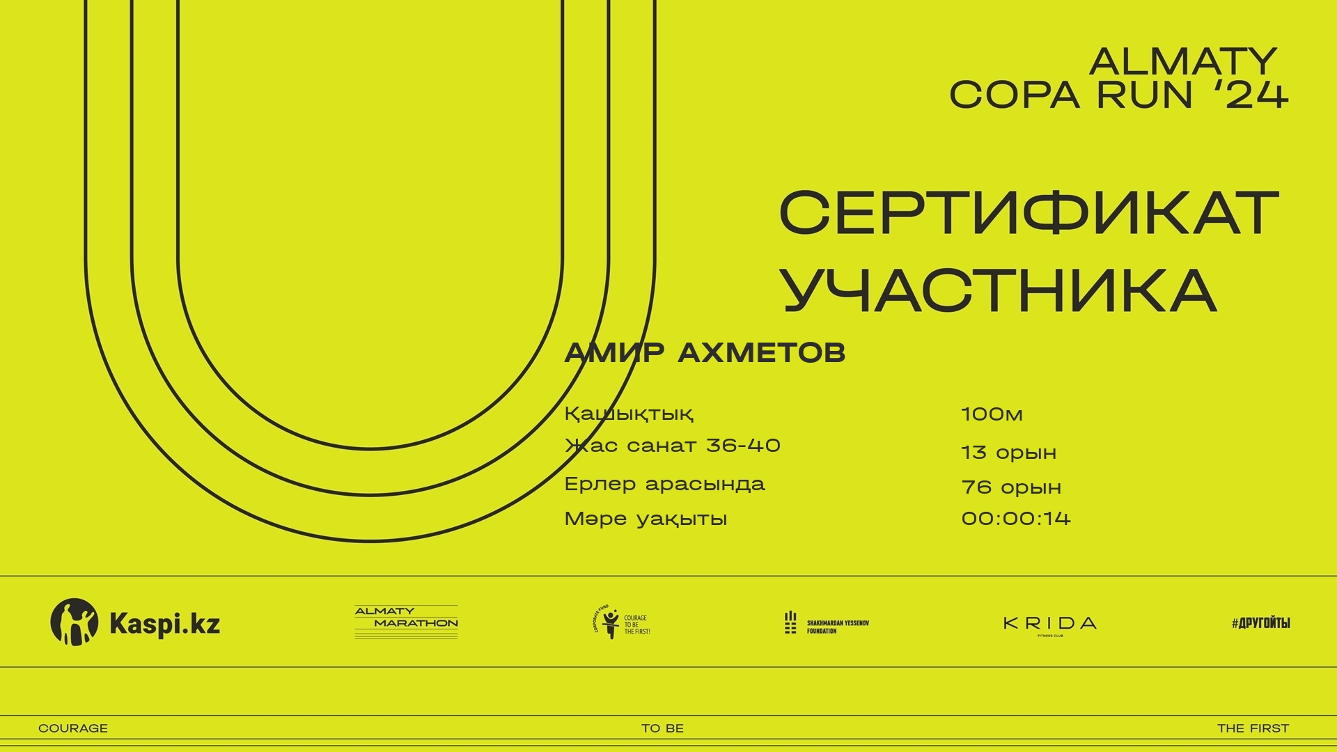 | 117 | Амир Ахметов | ![]() | Алматы | 624 | 00:13:28.6 | Жүктеп алу |