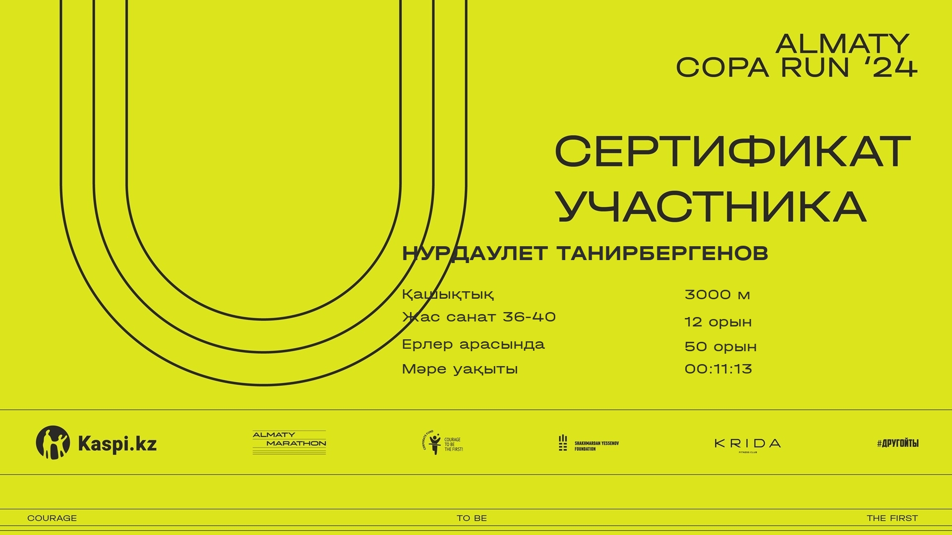 | 88 | Канат Тазабеков | ![]() | Алматы | 642 | 00:12:27.4 | Жүктеп алу |
