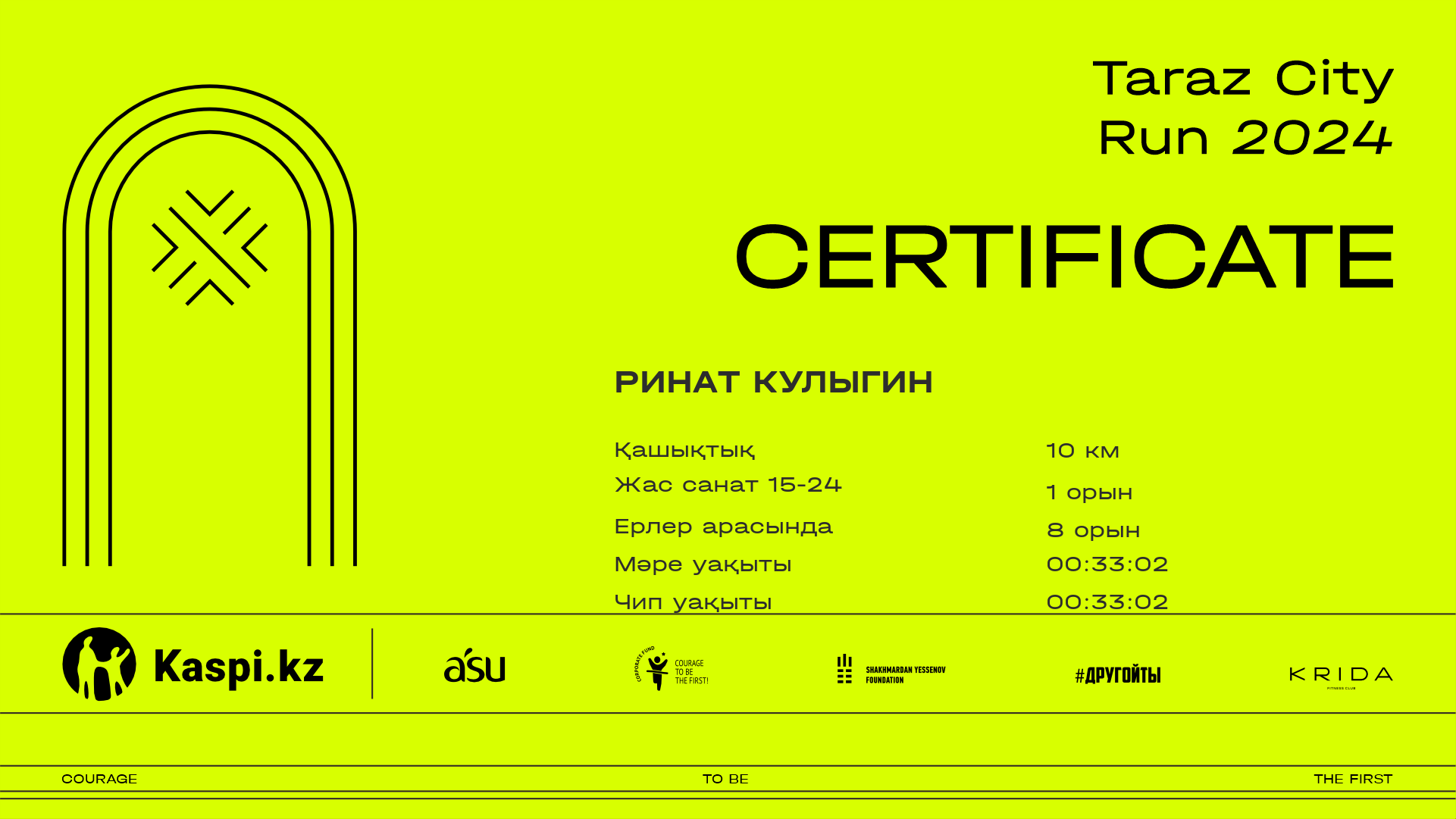 | 11 | Yestay Akbergen | ![]() | Алматы | 385 | 00:08:09.00 | 00:16:12.70 | 00:25:00.10 | 00:33:40.40 | 00:33:38.50 | Жүктеп алу |