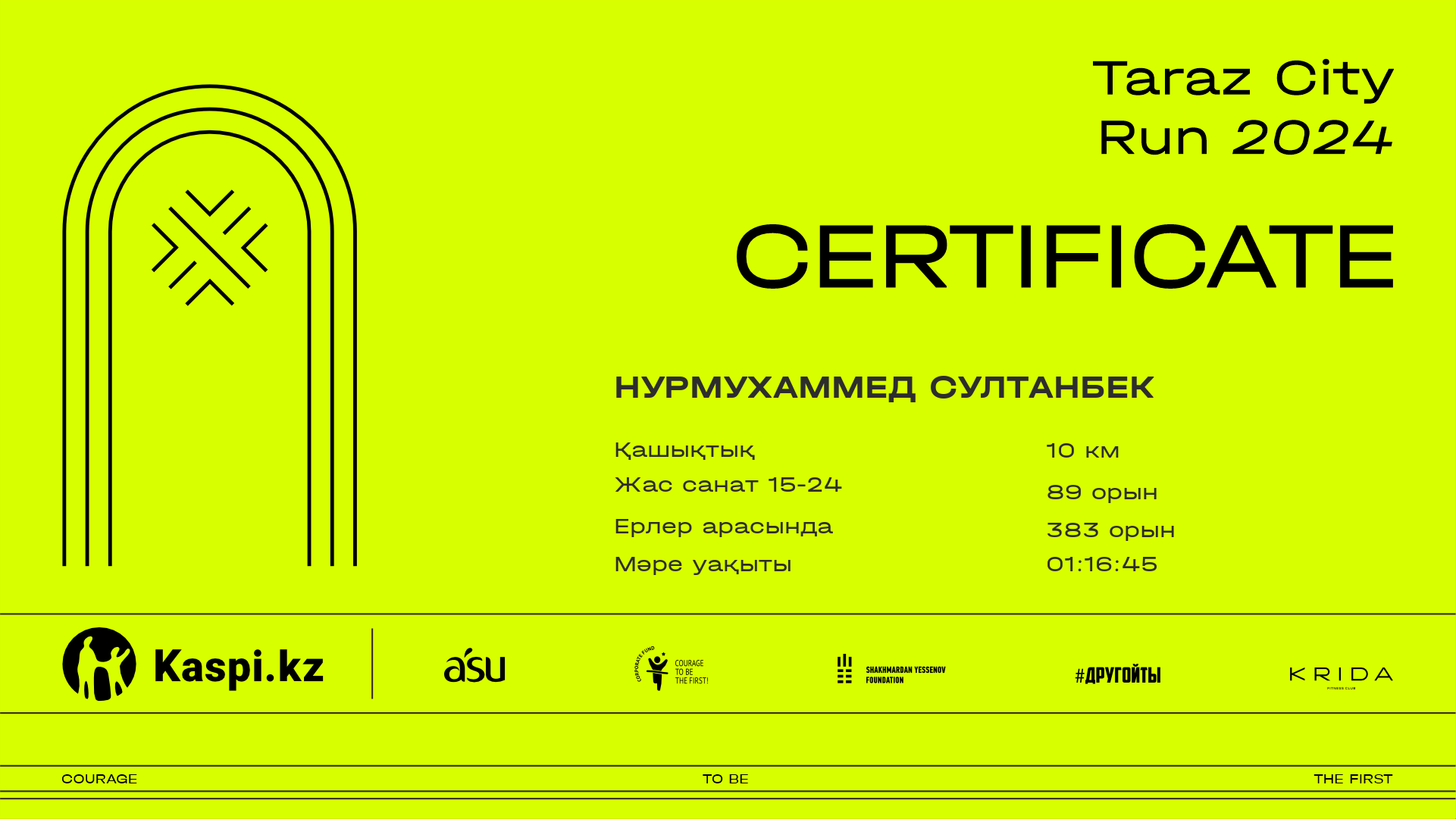 | 528 | Асыл Жетпісбаев | ![]() | Тараз | 570 | 00:18:50.00 | 00:37:35.80 | 00:57:20.80 | 01:18:07.50 | 01:17:57.70 | Жүктеп алу |