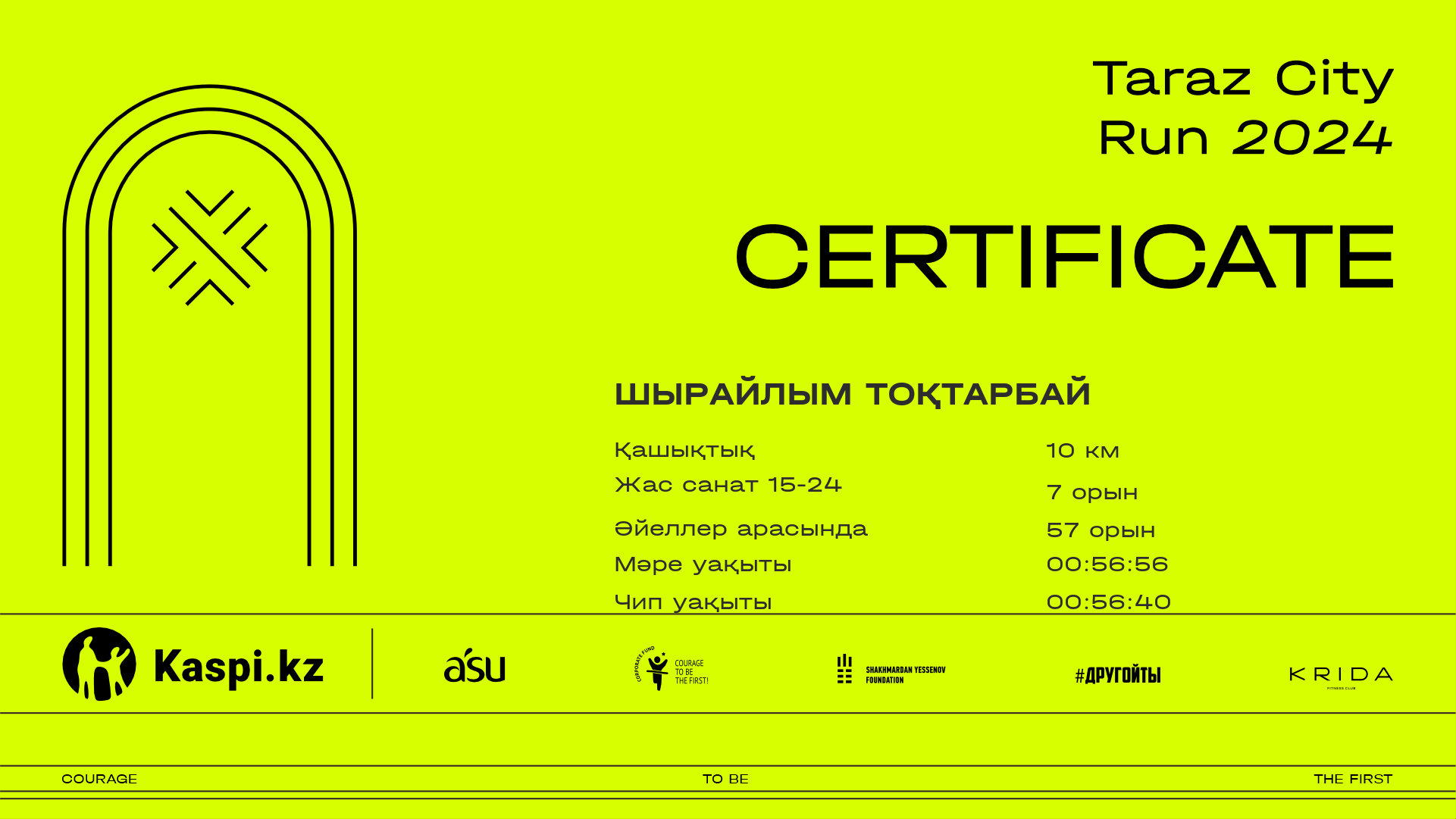 | 231 | Шакарым Дурысбек | ![]() | Тараз | 512 | 00:11:27.80 | 00:24:15.30 | 00:38:12.40 | 00:51:26.40 | 00:51:22.00 | Жүктеп алу |
