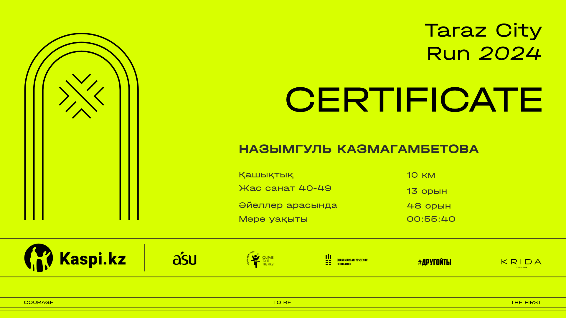 | 408 | Алтынбек Истурганов | ![]() | Алматы | 171 | 00:13:57.30 | 00:29:34.50 | 00:46:17.50 | 01:02:01.60 | 01:01:49.30 | Жүктеп алу |