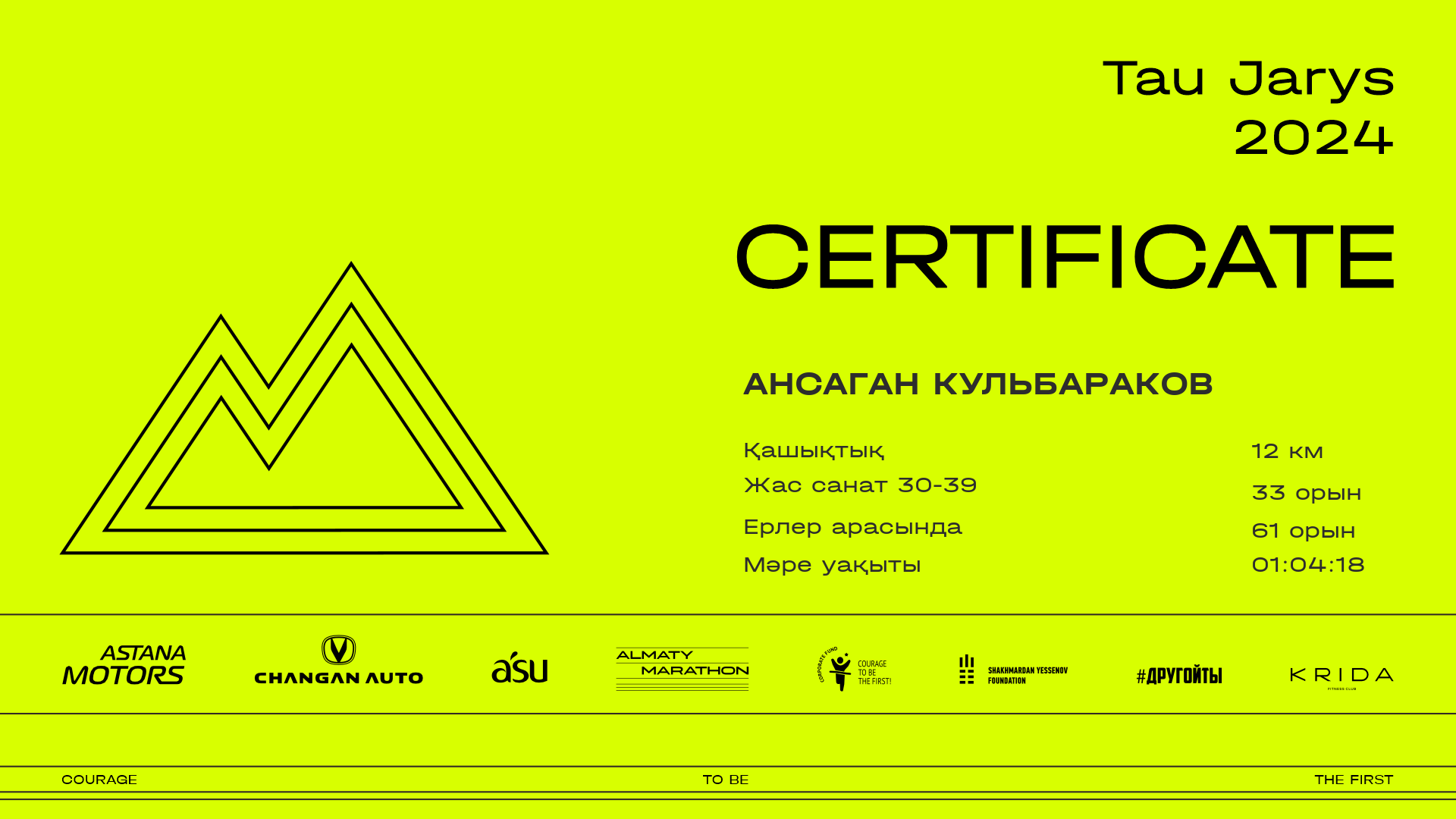 | 77 | МАРАТ УРМАНТАЕВ | ![]() | Алматы | 33 | 00:09:39.79 | 00:22:55.11 | 00:42:13.24 | 00:55:30.67 | 01:06:05.01 | 01:05:56.86 | Жүктеп алу |