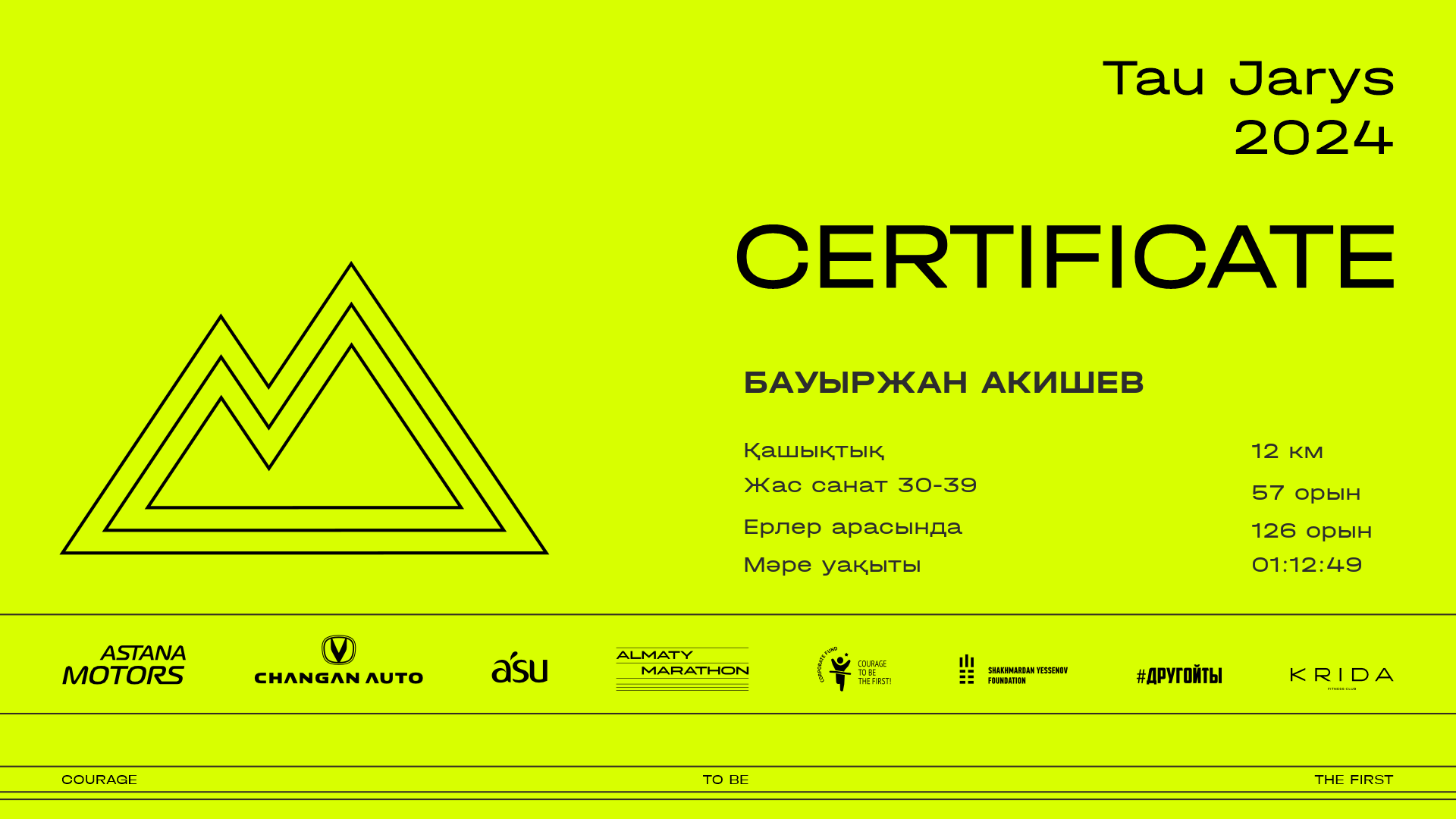 | 141 | Saken Serik | ![]() | Almaty | 154 | 00:09:32.83 | 00:24:13.37 | 00:46:08.58 | 01:01:08.34 | 01:13:03.97 | 01:13:00.28 | Жүктеп алу |