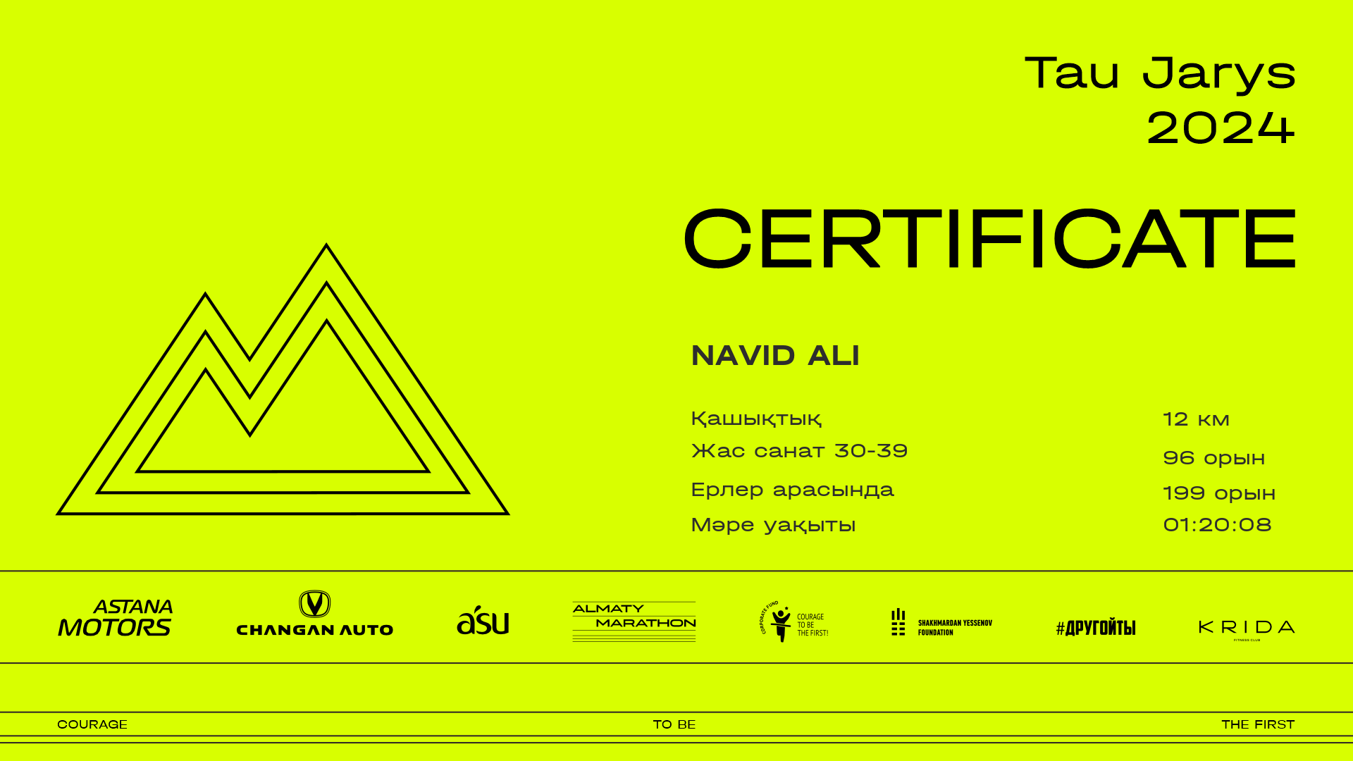 | 226 | Navid Ali | ![]() | Алматы | 412 | 00:09:30.62 | 00:25:18.20 | 00:49:21.50 | 01:06:50.40 | 01:20:08.80 | 01:20:03.20 | Жүктеп алу |