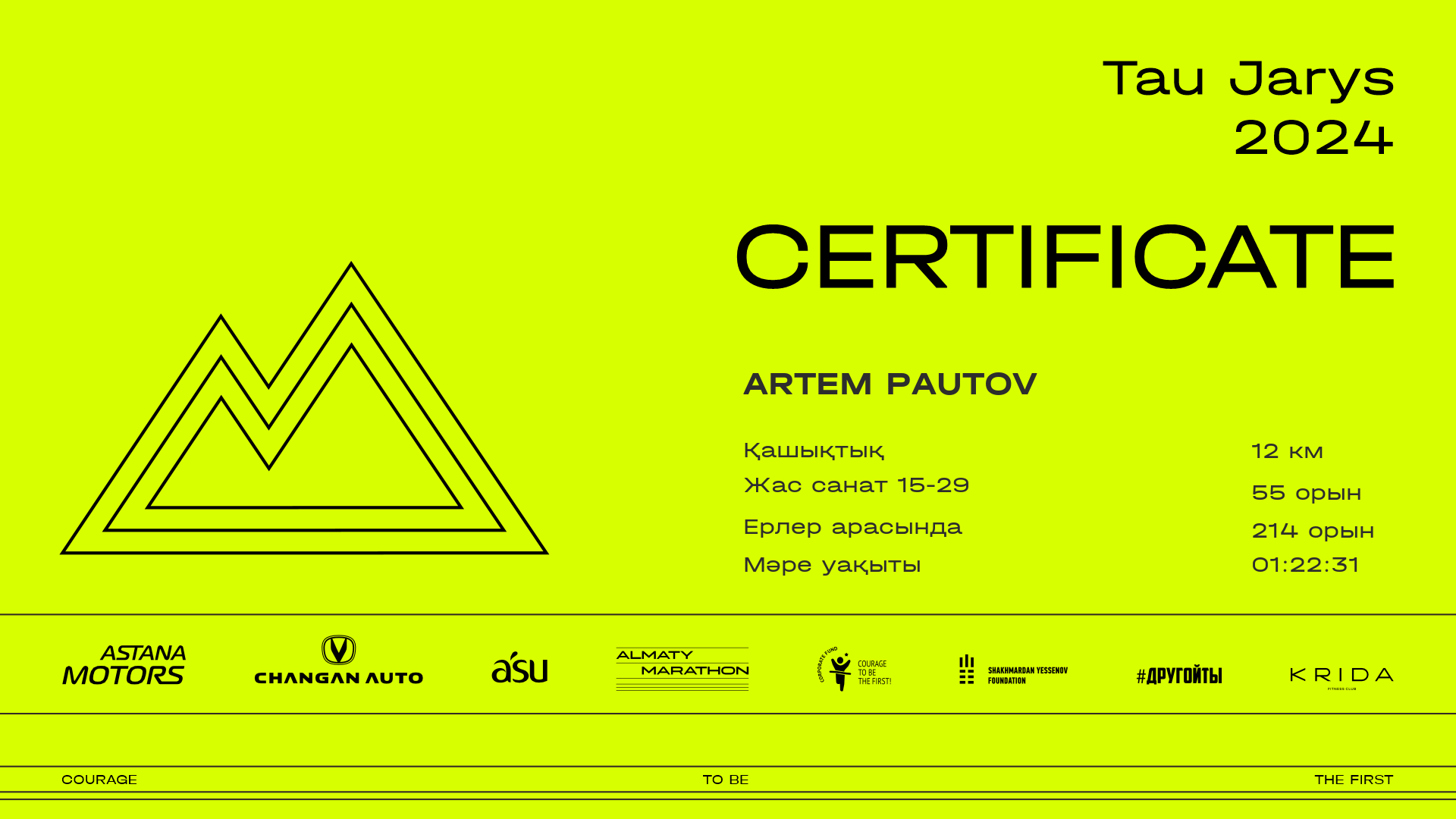| 250 | Erserik Makhanbet | ![]() | Алматы | 420 | 00:09:32.23 | 00:27:05.91 | 00:52:36.45 | 01:10:18.02 | 01:22:57.27 | 01:22:53.72 | Жүктеп алу |