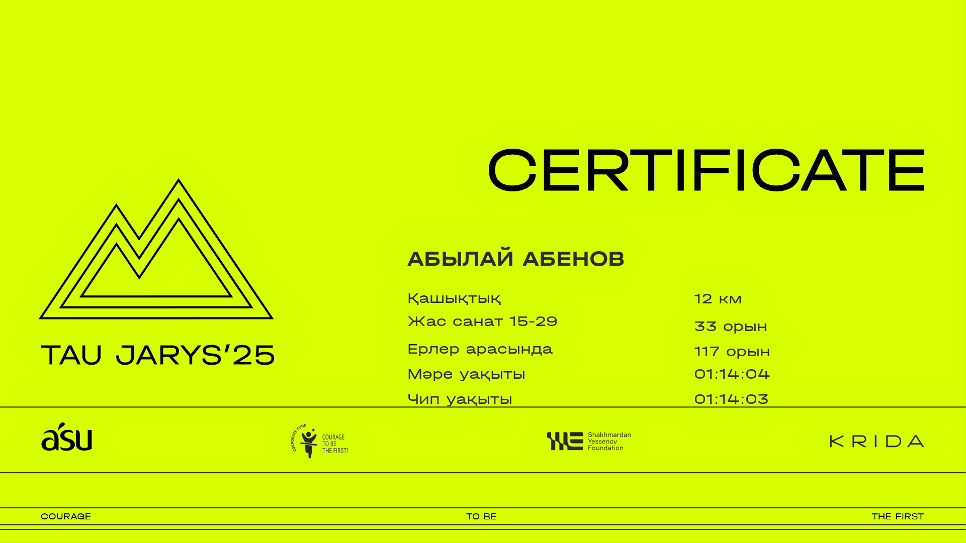 | 142 | Kazbek Serikbay | ![]() | Алматы | 483 | 00:08:21.90 | 00:22:22.80 | 00:29:14.70 | 00:46:23.40 | 01:01:36.90 | 01:08:48.60 | 01:14:48.00 | 01:14:46.30 | Жүктеп алу |